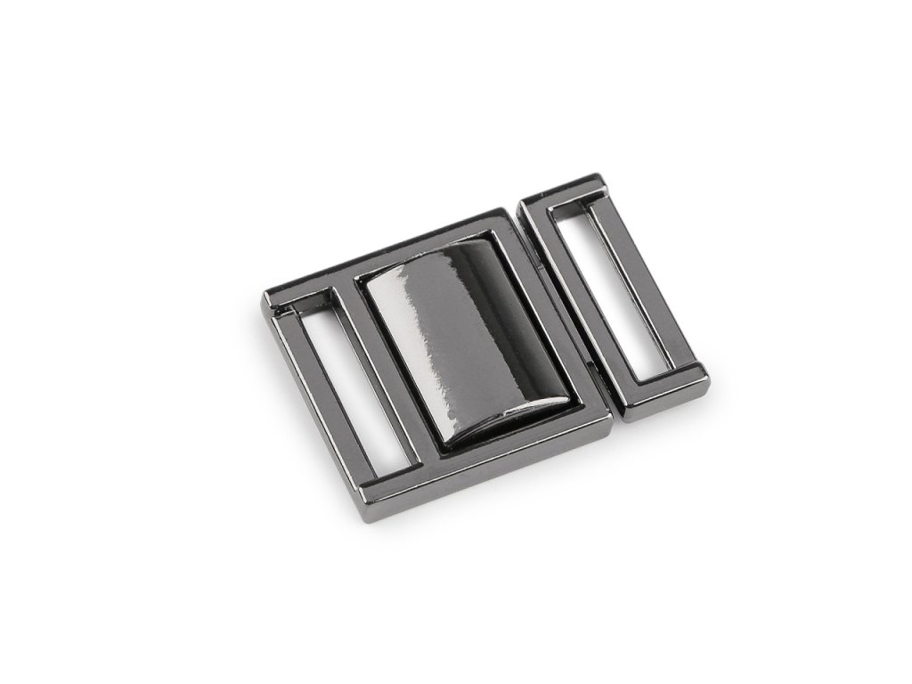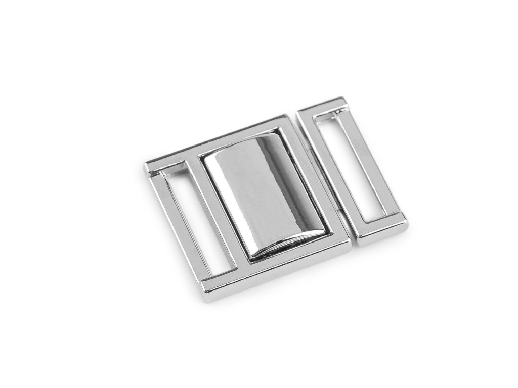 Kovová mini spona se skládá ze dvou částí, které do sebe provlečete a zacvaknete. Je vhodná na výrobu tenkých pásků k šatům, halenkám apod.- Rozměry: 28 x 21 mm