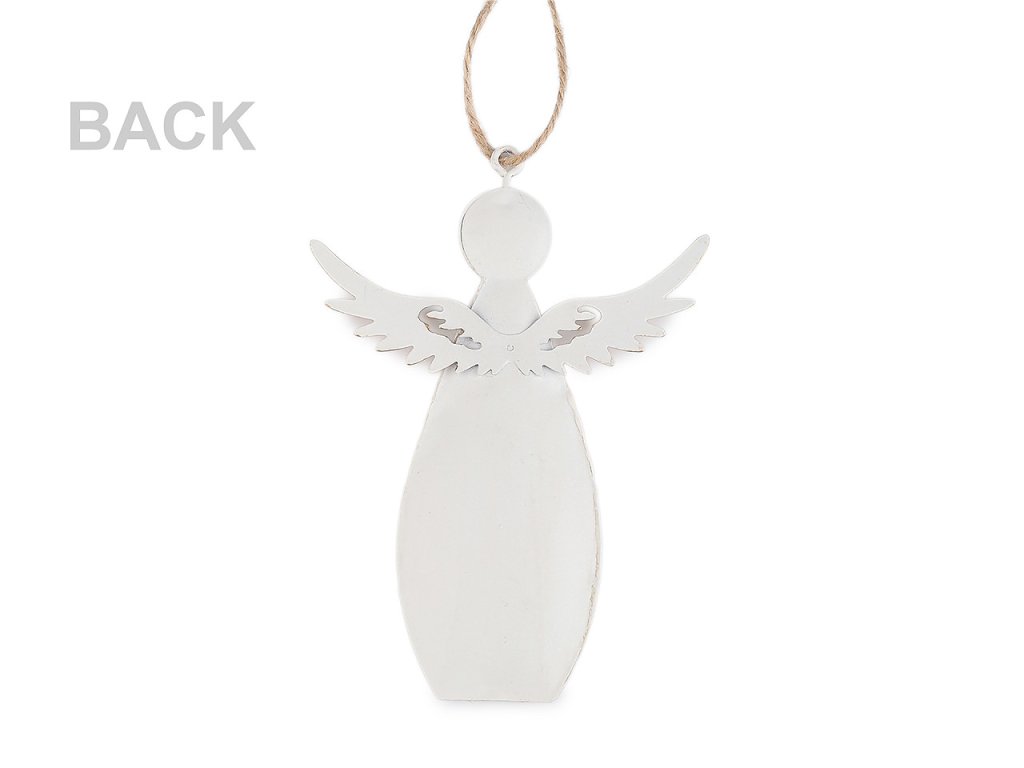 Dekorační kovový anděl v minimalistickém designu působí nadčasově a dokonale se hodí do jakéhokoliv interiéru. Domovu dodá pocit bezpečí a útulnosti. Je vhodný k dozdobení věnců, vánočního stromečku, větviček ve váze apod. Má poutko na zavěšení.- Šířka: 8 cm