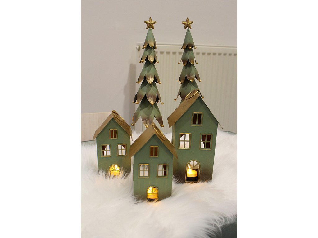 Kovový domeček nádherně rozzáří jakýkoliv interiér a vytvoří v něm příjemnou atmosféru. Vleze se do něj svíčka s průměrem až 5 cm. Je stabilní a na povrchu má jemnou patinu. Vyniká nejen svou jedinečností, ale i vysokou kvalitou. Domeček můžete postavit na stůl či poličku, ale díky očku ho můžete i pověsit. Vynikne i v kombinaci se stromečkem, který je v podobném designu.- Rozměry: č. 1 a 2: 10 x 7,5 cm