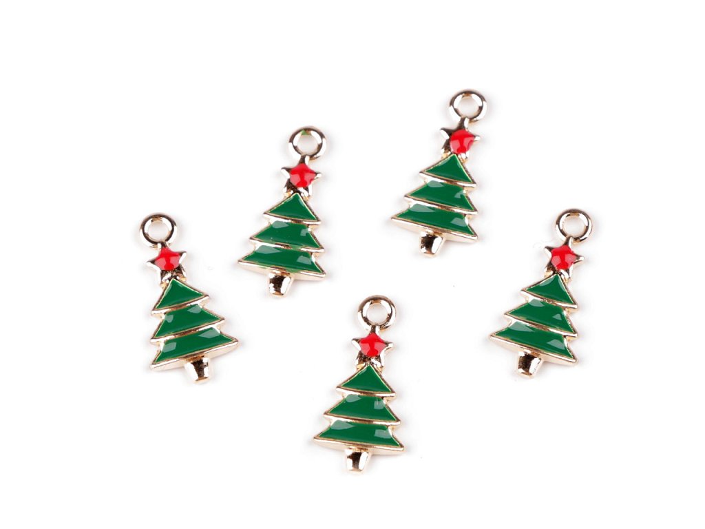 Přívěsek vánočního stromečku má mnohostranné použití. Je ozdobený barevným smaltem, je jednostranný. Stromeček č.2 je ozdobený broušeným kamínkem.- Rozměry: č. 1: 10 x 20 mm