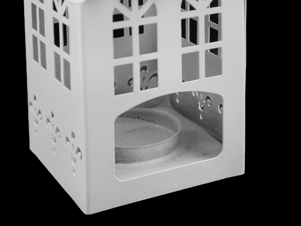 Kovový svícen ve tvaru domečku na klasické čajové nebo LED čajové svíčky doslova rozzáří a zútulní váš domov. Má v sobě výřezy, které zaručují při hoření svíčky zajímavý efekt. Domeček můžete také pověsit za kovové poutko. Využijete ho celoročně, i při venkovním posezení. Varianta č. 1 je s komínem. Varianta č. 2 je bez komínu. Drobný tmavý flíček u otvoru na svíčku vznikl při výrobě, pravděpodobně při barvení. Není to důvod k reklamaci.- Rozměry: cca 8,5 x 16 x 8 cm