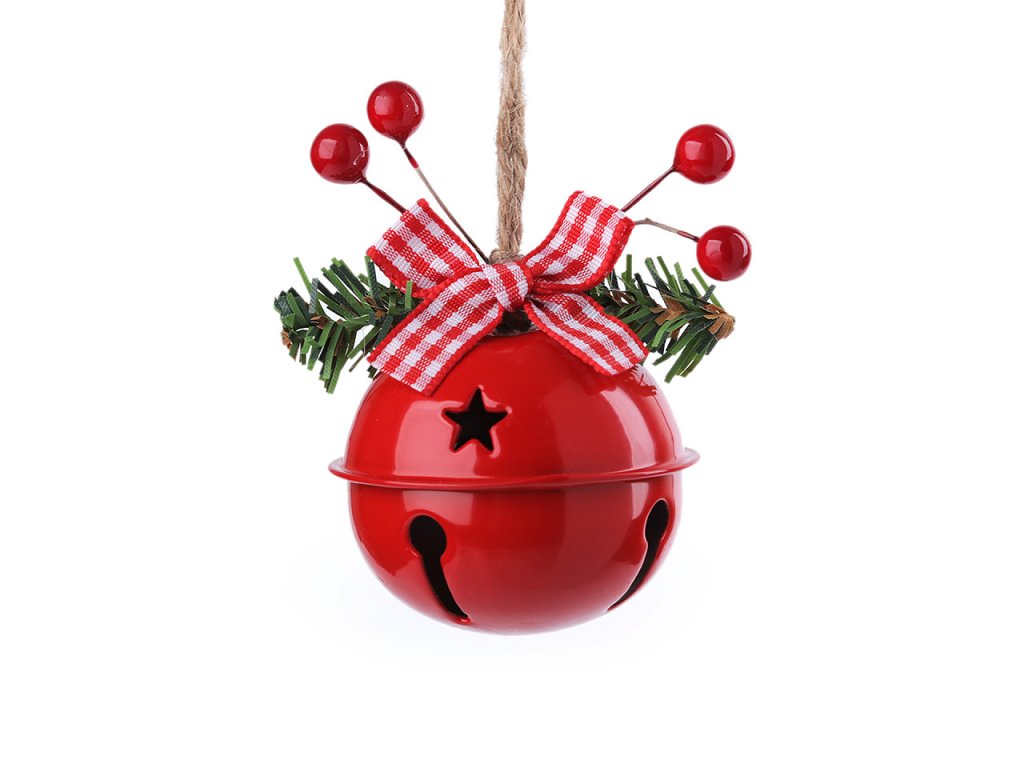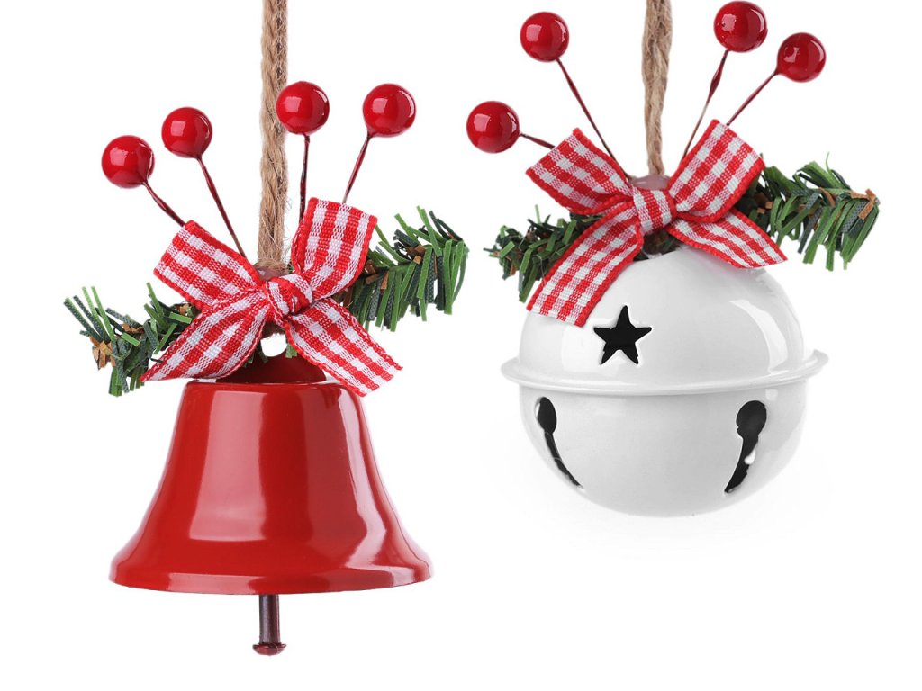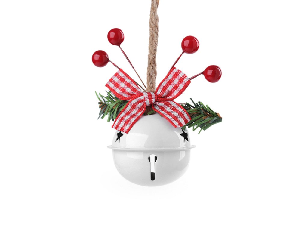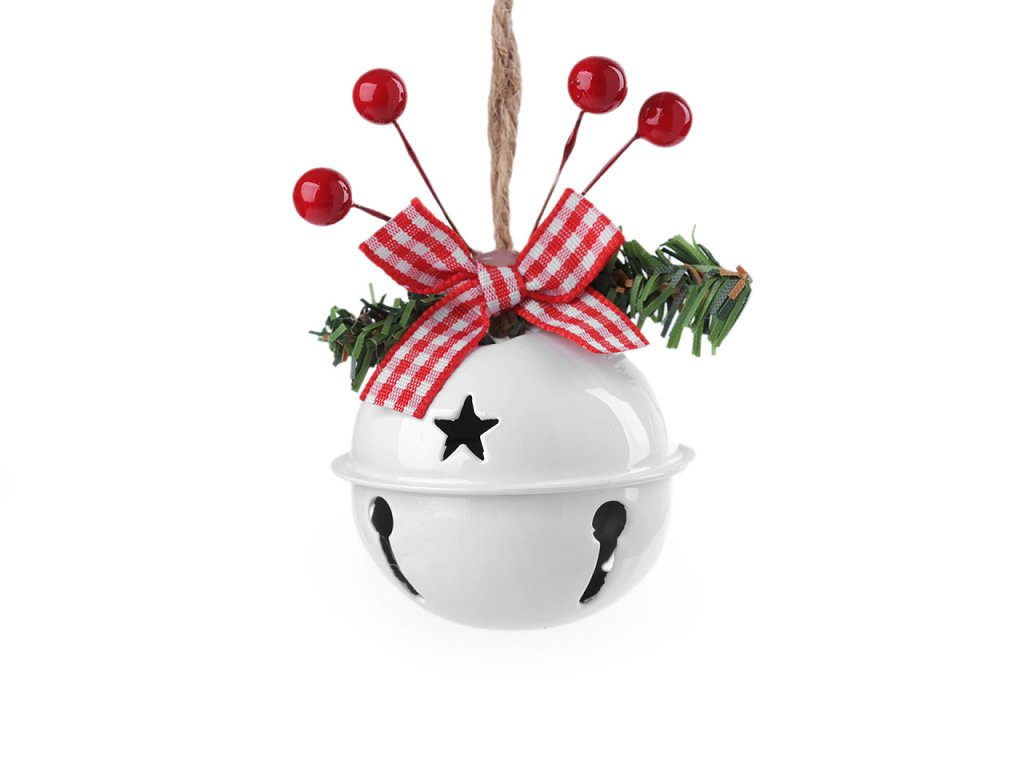 Kovové zvonečky a rolničky využijete jako vánoční závěsnou dekoraci. Nahoře jsou ozdobené větvičkou, mašličkou a bobulemi. Mají poutko k zavěšení, můžete je pověsit na stromeček, větvičku ve váze nebo na dekorační girlandy a věnce.- Průměr: č. 1 a 2: 48 mm