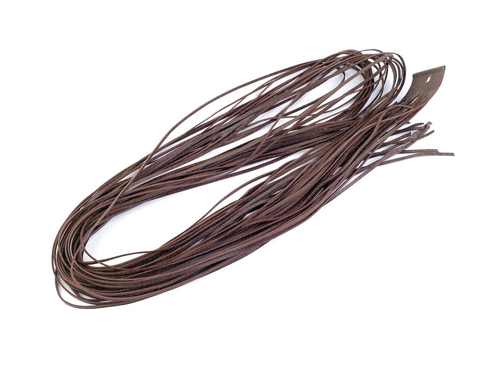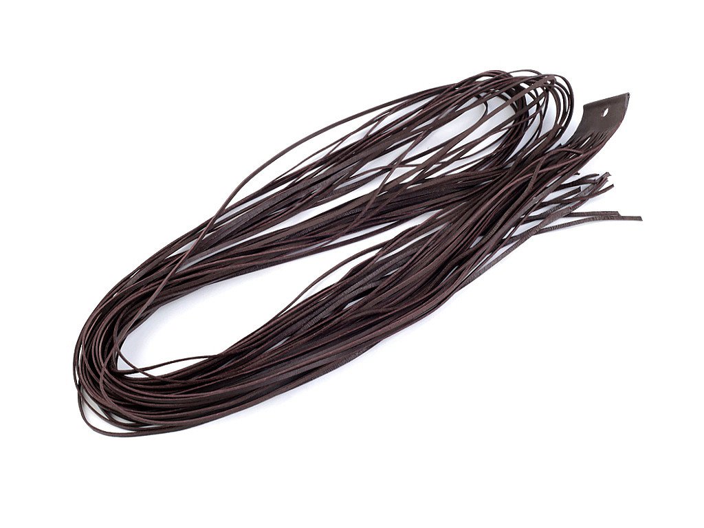 Prvotřídní kožené řemínky vysoké kvality, mají široké možnosti použití. Jsou vhodné pro ozdobné šněrování oděvů a kabelek, vedle voskovaných šňůr jsou nejčastějším návlekovým materiálem pro výrobu bižuterie. Řemínky jsou velmi pevné, ploché, horní strana má jemný lesk, dolní je matná. Jsou z pravé kůže, vyrobené z vepřovicové lícovky. Využívají se na zavěšení přívěsků nebo pro nejrůznější splétání náramků. V horní části přecházejí do závěsu s očkem, jsou vhodné pro vystavení na prodejním stojanu. Ze závěsu se musí odstřihnout.- Šíře: 2 mm