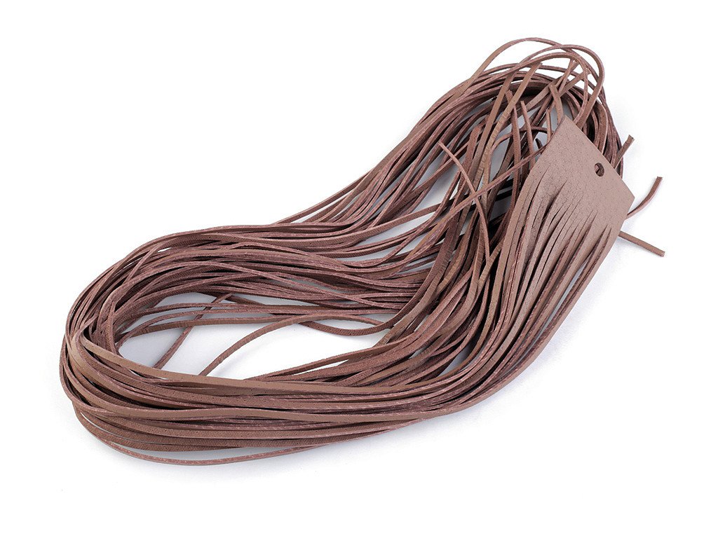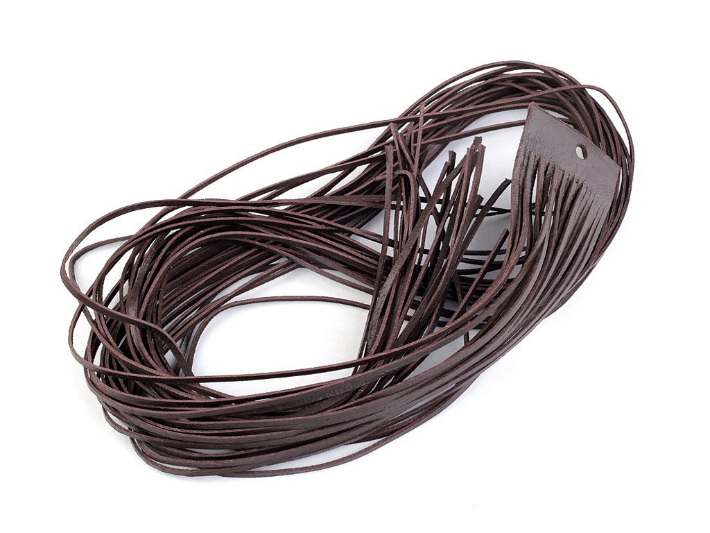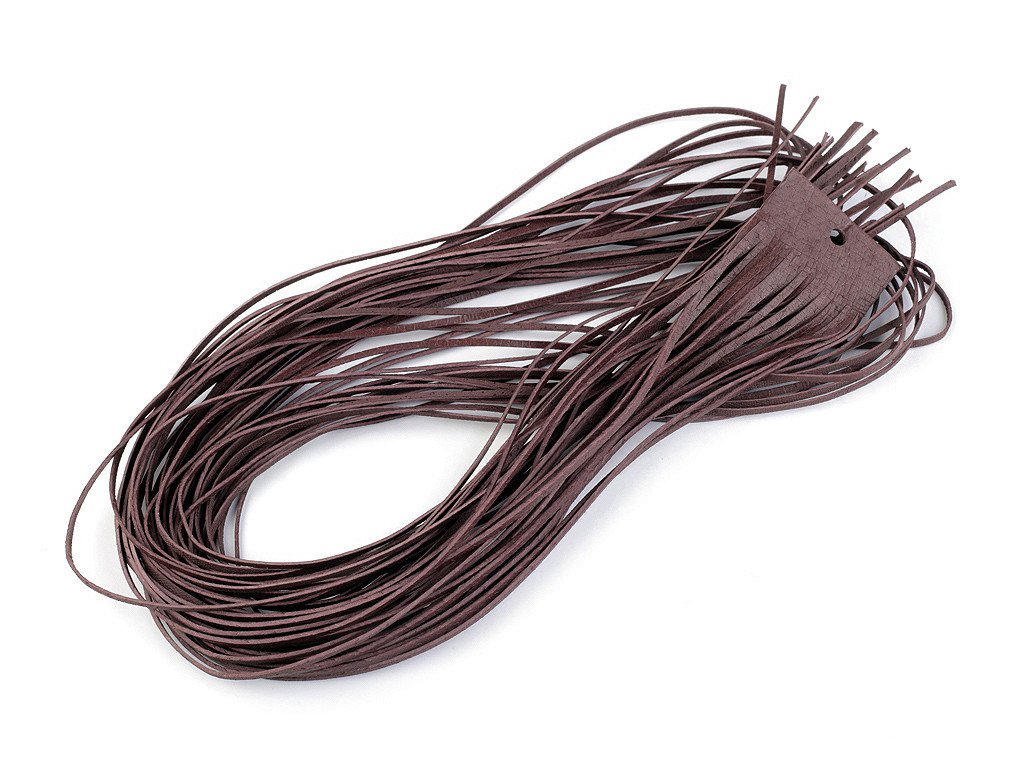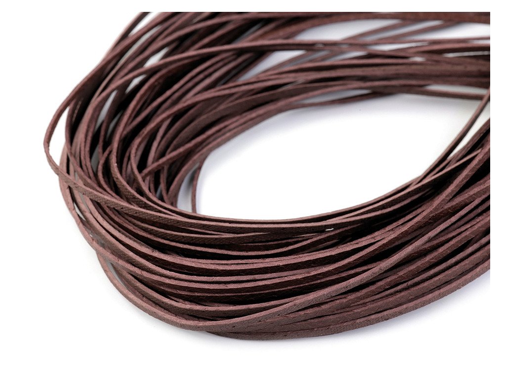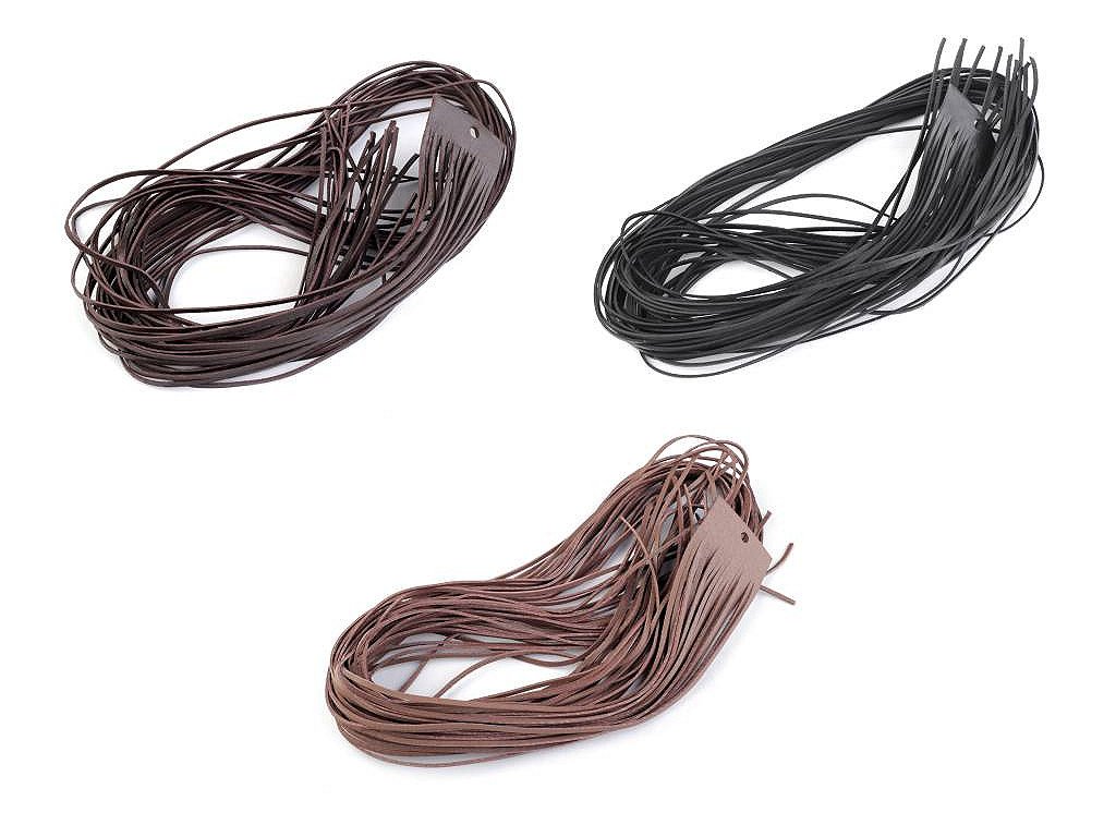 Dlouhé kožené řemínky prvotřídní kvality, jsou oblíbeným návlekovým materiálem. Kromě výroby bižuterie jsou vhodné i na ozdobné šněrování oděvů a kabelek. Řemínky jsou velmi pevné, ploché, horní strana má jemný lesk, dolní je matná. Jsou z pravé kůže, vyrobené z vepřovicové lícovky. Využívají se na zavěšení přívěsků nebo pro nejrůznější splétání náramků. V horní části přecházejí do závěsu s očkem, jsou vhodné pro vystavení na prodejním stojanu. Ze závěsu se musí odstřihnout.- Šíře: 2 mm
