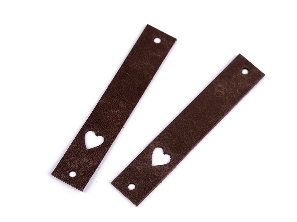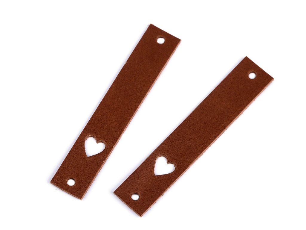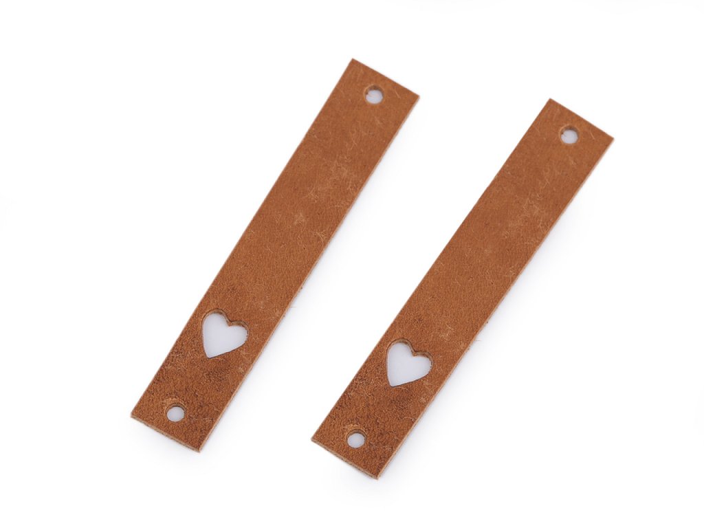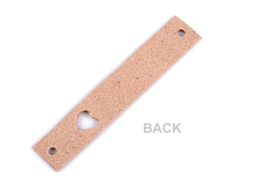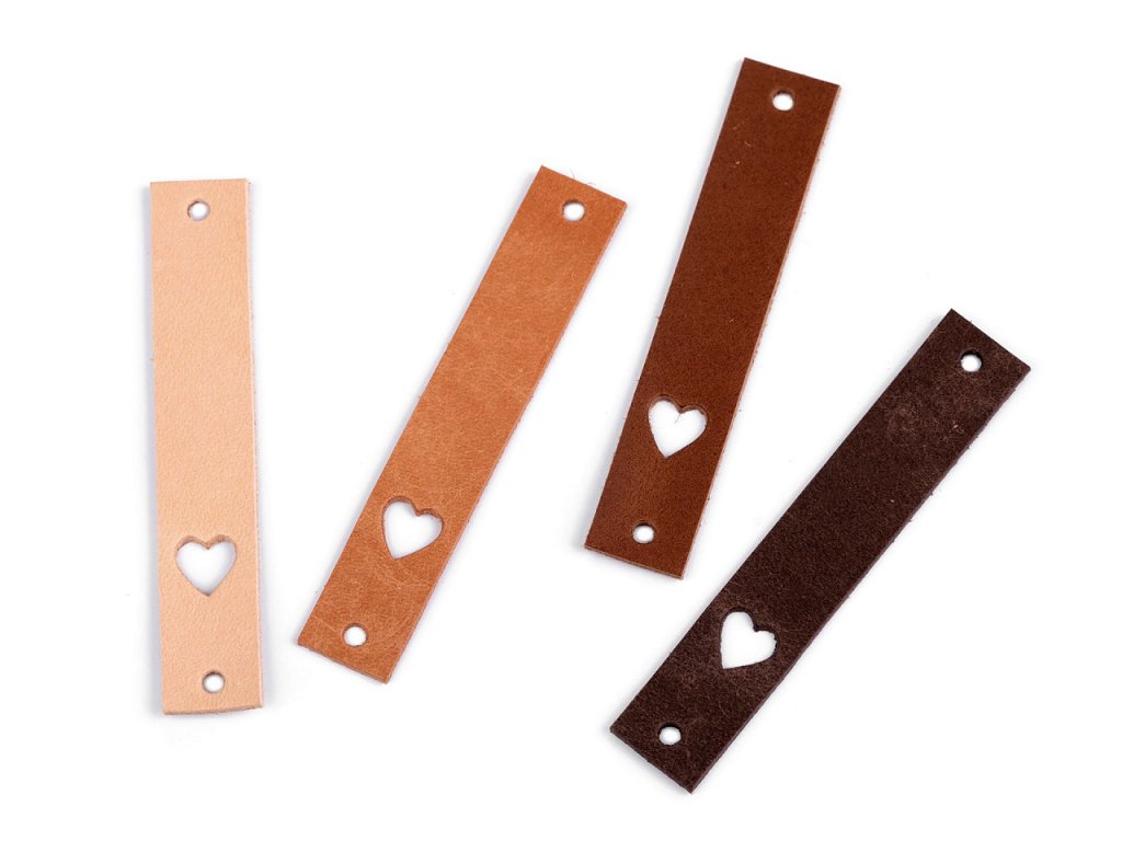 Kožená cedulka je jednostranná, na bocích má otvory k přišití. Zdobí ji vyražený otvor srdíčka. Použití: Cedulku můžete našít nebo nalepit jako štítek na vaše výrobky, například tašky, pouzdra nebo dekorace. Své využití určitě najde i u scrapbookingu, kde s ní můžete ozdobit alba, přáníčka či zabalit dárky.- Rozměry: 12 x 70 mm