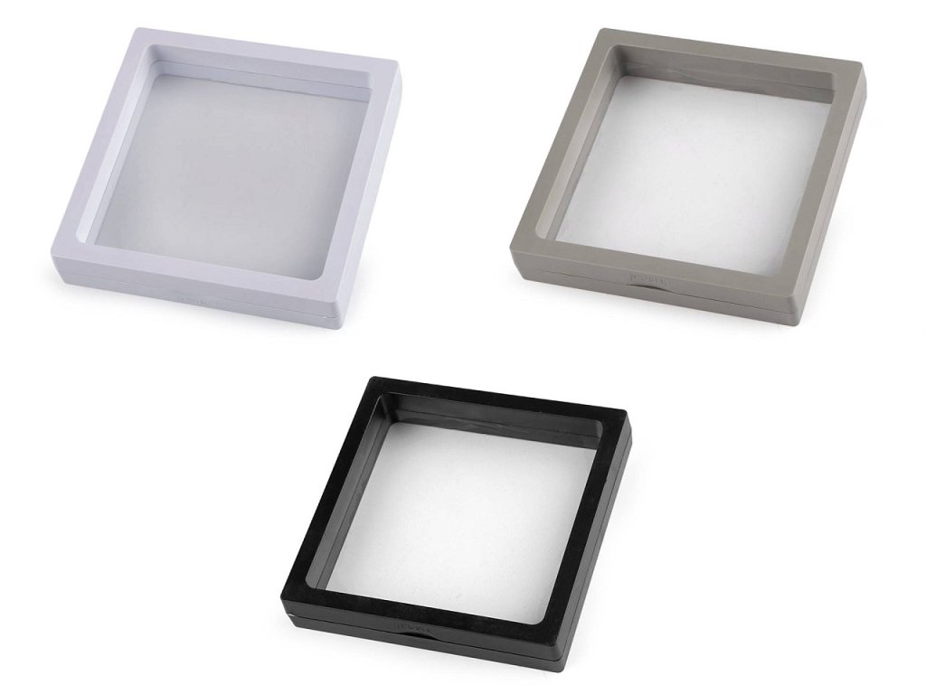 Rámeček / krabička s průhlednou fólií je elegantní a praktický doplněk na vystavení a darování nejen šperků. Průhledná fólie poskytuje dokonalý pohled na uložené předměty. Je otevírací, uvnitř má dvojitý transparentní průhled, do kterého můžete například šperky umístit. Folie uvnitř je vysoce pružná, přizpůsobí se vloženému obsahu a pevně jej obepne. Krabička je pevná, hodí se nejen pro osobní potřebu, ale také jako vynikající prezentační obal pro dárkové účely nebo vystavení v prodejnách. Je opakovaně použitelný.- Rozměry: 11 x 11 cm