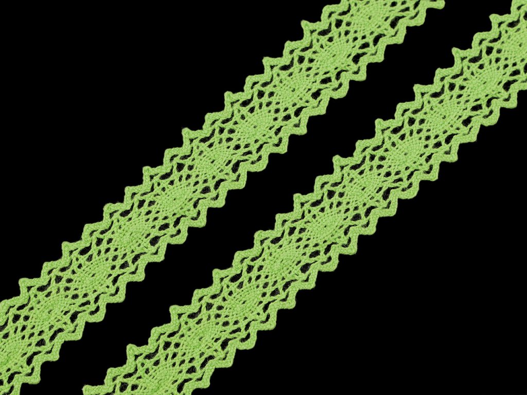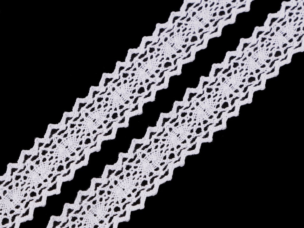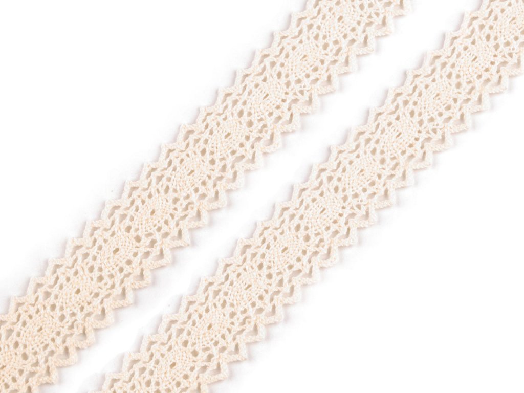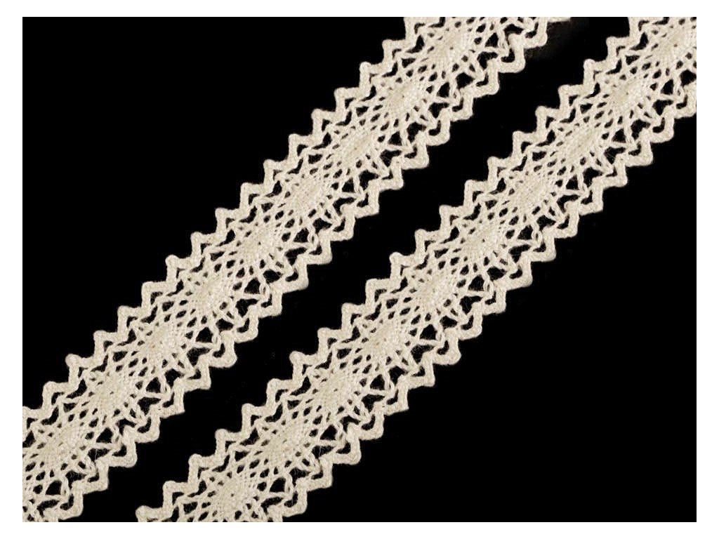 Paličkovaná krajka je zdobená vzorem pavoučků. Doporučujeme ji žehlit přes tkaninu. Použití: Krajku můžete využít k olemování polštářů, ubrusů, deček a oděvů. Je vhodná také jako dekorace na přání k narozeninám či na svatební oznámení. Můžete s ní i ozdobit papírové nebo dřevěné krabice. Krajka může mít v návinu 2 až 4 prostřihy. Šíře krajky se po konečné úpravě může lišit o ±6%.- Šíře: 23 mm