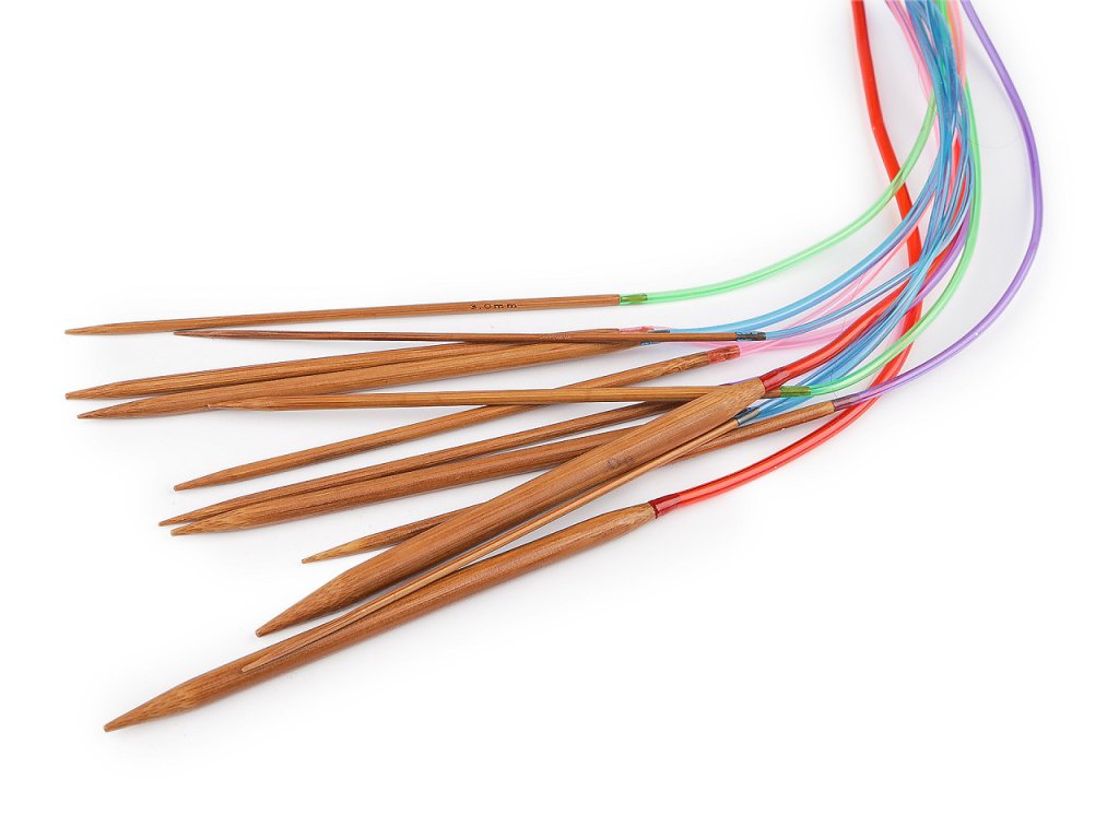 Bambusové pletací jehlice jsou spojené plastovým lankem, díky kterému pletete pohodlně dokola bez švů. Skvěle se hodí k pletení ponožek, nákrčníků, čepic, sukní apod. Díky použitému materiálu mají nízkou hmotnost.- Průměr: 2; 2,25; 2,5; 2,75; 3; 3,25; 3,5; 3,75; 4; 4,5; 5; 5,5; 6; 6,5; 7; 8 mm