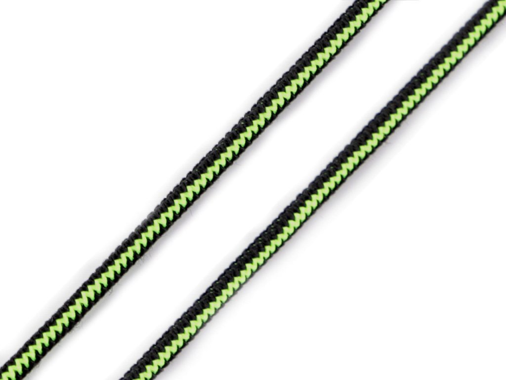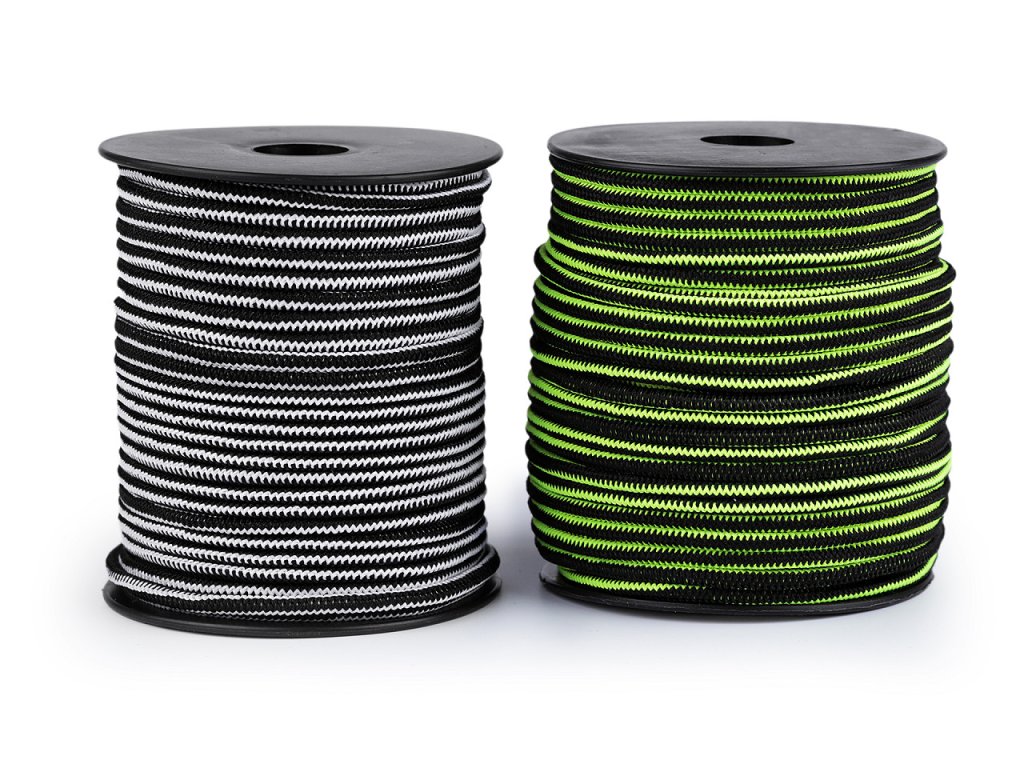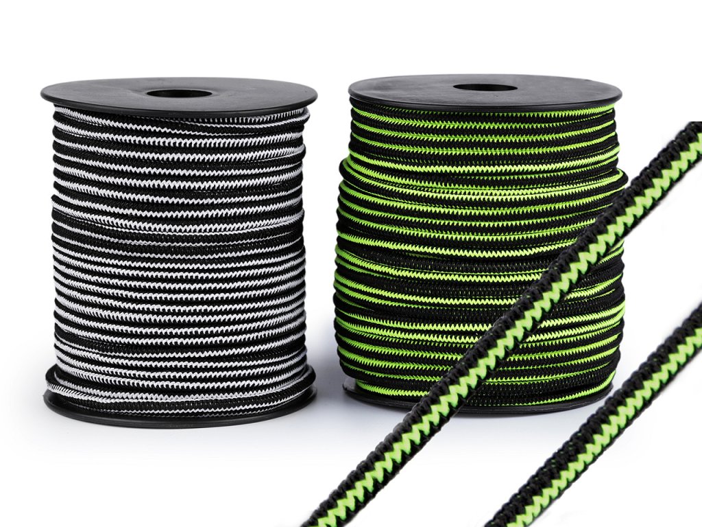 Kulatá pruženka má design, který připomíná zip a jemnou strukturu. Je vhodná do bund, vest, větrovek, tenisek a dalšího sportovního oblečení a doplňků, ke stažení objemu pomocí koncovek a brzdiček. Je jemná v tahu.- Průměr: 2,5 mm