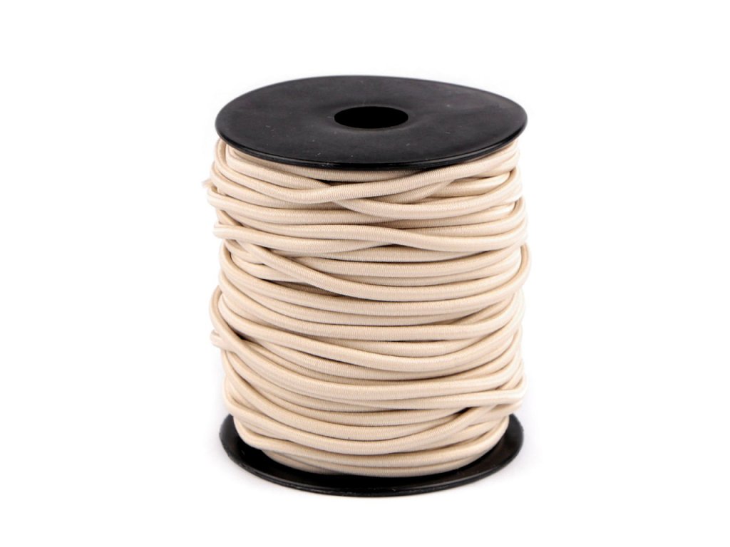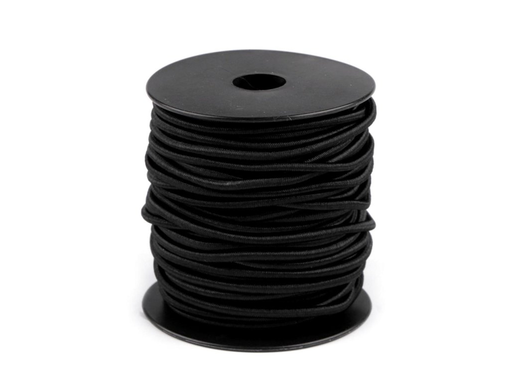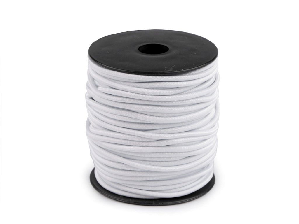 Kulatá pruženka je vhodná do bund, vest, větrovek a dalšího sportovního oblečení, ke stažení objemu pomocí koncovek a brzdiček. Je pevnější v tahu.- Průměr: 3 mm