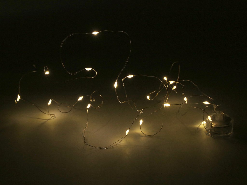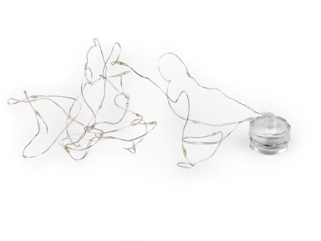 LED osvětlení je výjimečné v tom, že je voděodolné. Můžete ho bez problému zakomponovat do květinových aranžmá, do váz apod. Nádherně vynikne jako svatební dekorace. Najdete na něm 20 LED diod. Díky drátu ho můžete i dobře tvarovat. Svítí teplým světlem, nebliká. Baterie (2x CR2032) jsou součástí balení. Upozorňujeme zákazníky, že pokud osvětlení nesvítí, je potřeba odstranit černé těsnění. Nemusíte mít obavy, světlo bude svítit i ve vodě.- Délka: 2 m