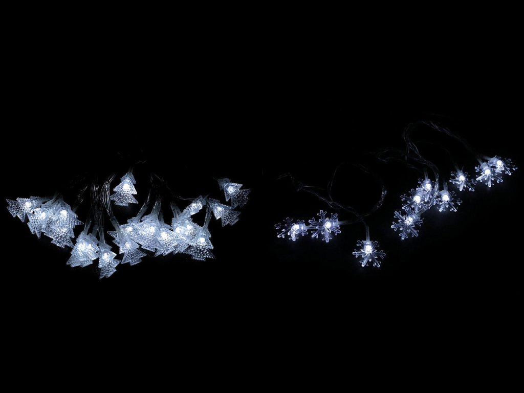 LED světelný řetěz vločky, hvězdy, stromečky na baterie