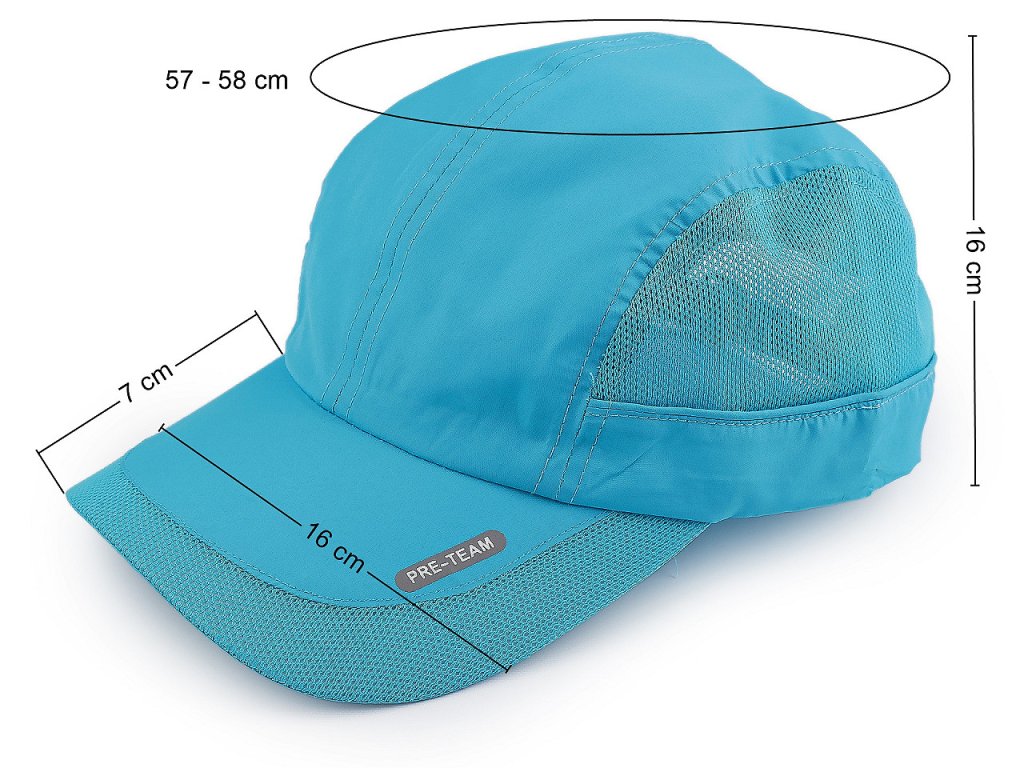 Kšiltovku s postranní perforací ocení ženy i muži sportovního typu. Je vyrobená z lehkého a prodyšného materiálu, který rychle schne, poskytne komfort i při zvýšené aktivitě. Kšilt je pevný, lehce prohnutý, zaoblený, spolehlivě ochrání před sluncem. Přezka v zadní části umožňuje obvod kšiltovky variabilně upravit. Výška je měřená jako délka předního panelu - od kšiltu po horní střed kšiltovky.- Obvod: 57 - 58 cm