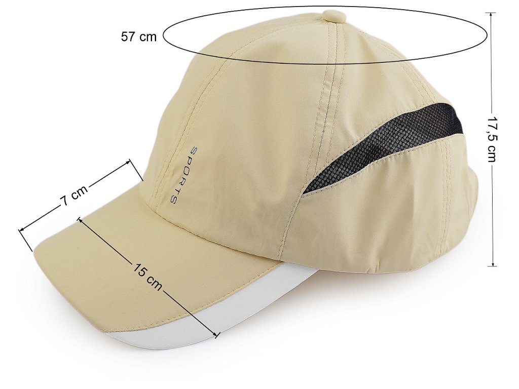 Kšiltovku s částečnou postranní perforací ocení ženy i muži sportovního typu. Je vyrobená z lehkého a prodyšného materiálu. Kšilt je pevný, lehce prohnutý, zaoblený, spolehlivě ochrání před sluncem. Suchý zip v zadní části umožňuje obvod kšiltovky variabilně upravit. Výška je měřená jako délka předního panelu - od kšiltu po horní střed kšiltovky.- Obvod: 57 cm