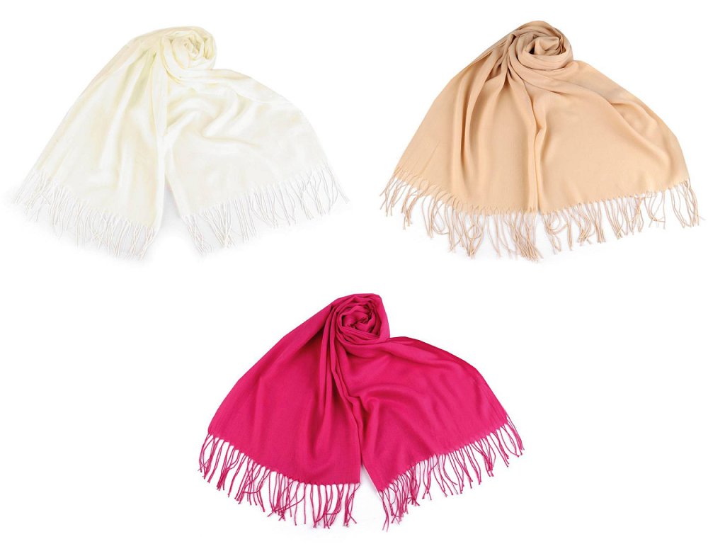 Letní šátek / šála s třásněmi jednobarevný 70x175 cm