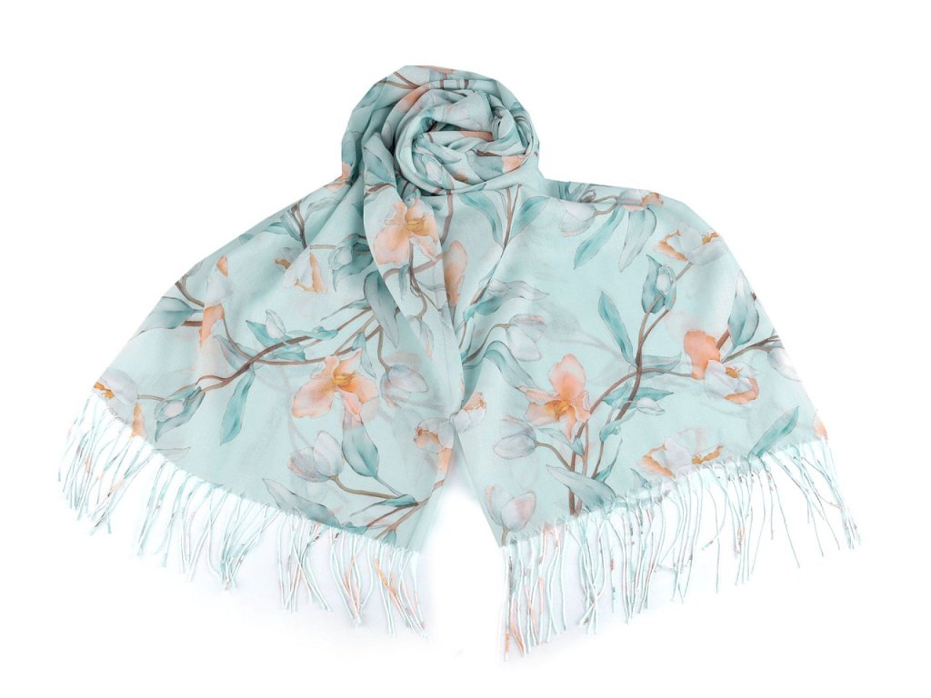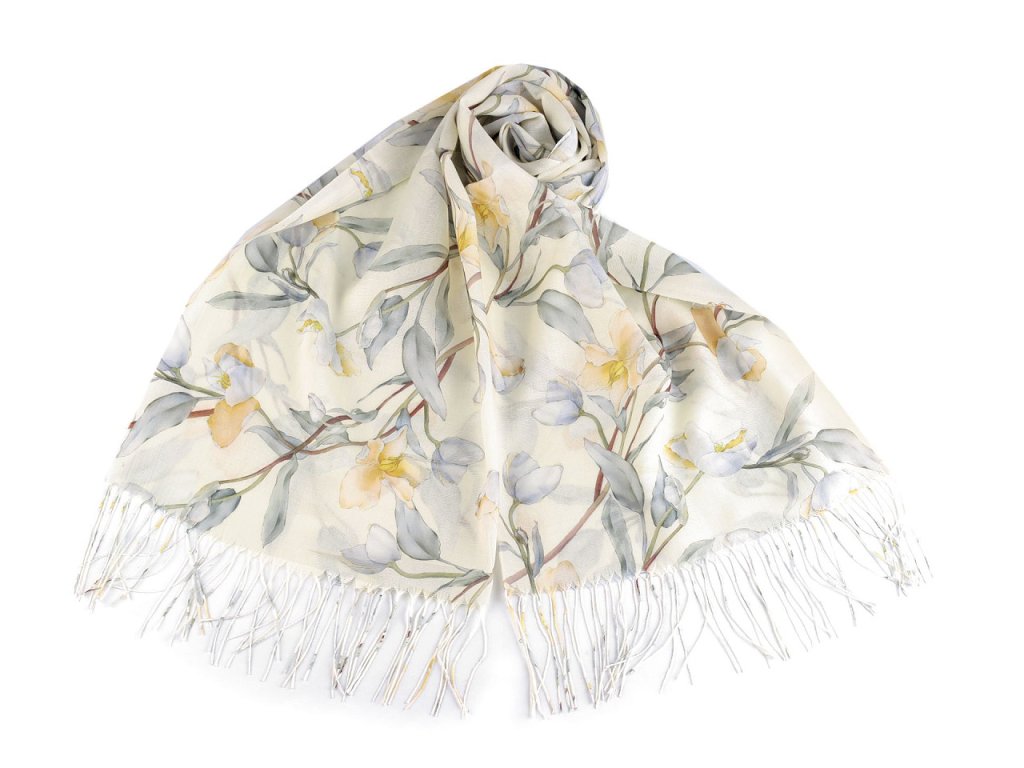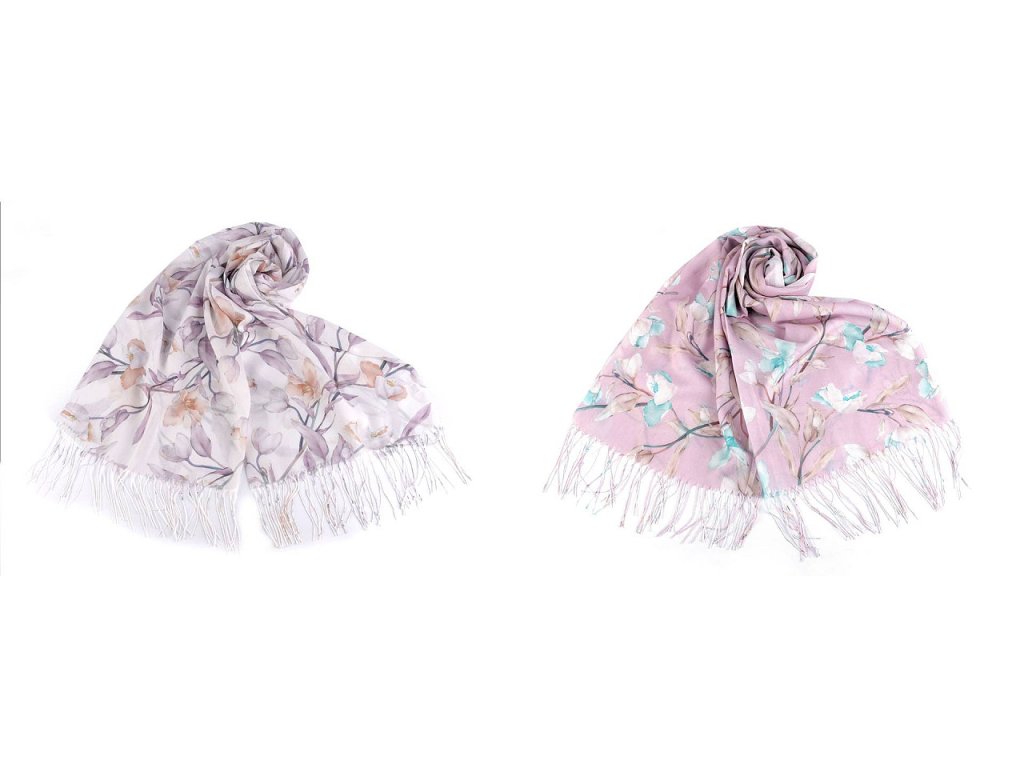 Letní šátek / šála s třásněmi květy 70x180 cm