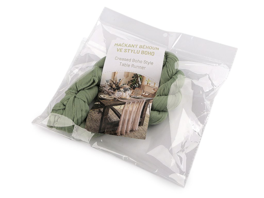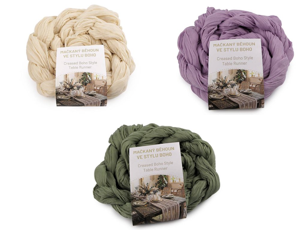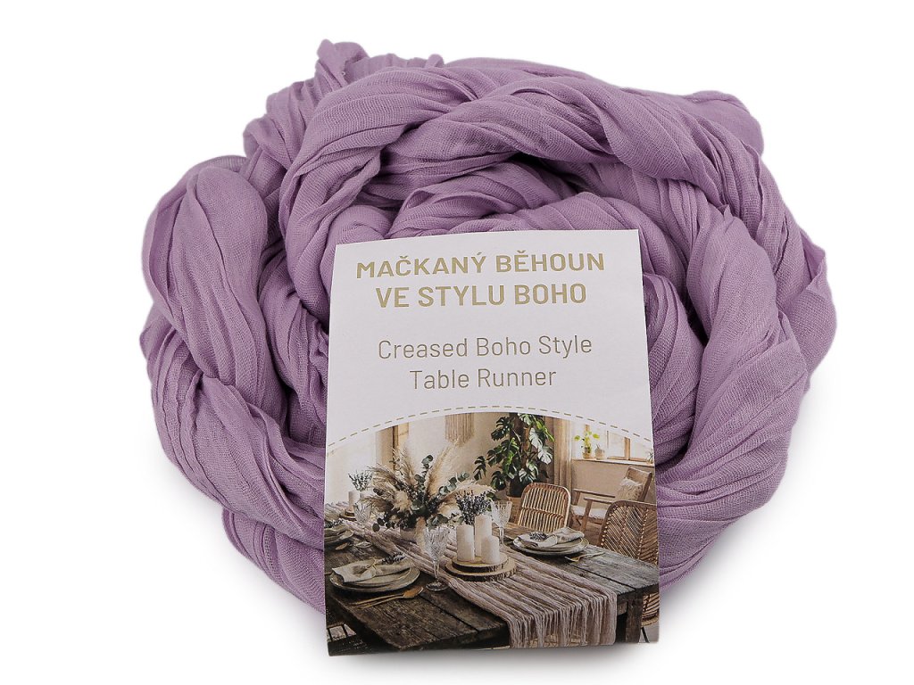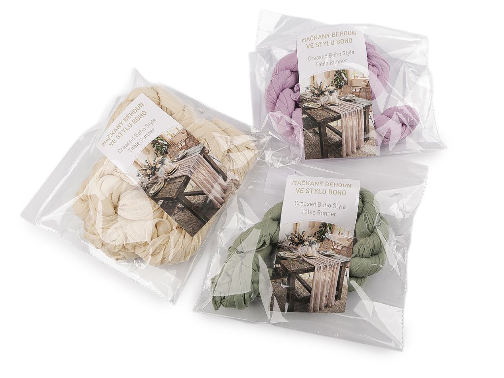 Slavnostní mačkaný běhoun ve stylu boho je elegantní dekorací, která poslouží k ozdobení středové části stolu. Jeho jednoduchý vzhled a průsvitný materiál, v kombinaci s přírodními tóny, dokonale zapadne do atmosféry boho stylu. Kvalitní materiál zajišťuje příjemnou texturu a vzhled, který působí lehce a vzdušně. Využijete ho na různých oslavách a svatbách, kterým dodá harmonickou atmosféru. Může být i ozdobou pro předsvatební hostinu, recepci, party či jiné typy oslav, kde chcete vytvořit nezapomenutelnou atmosféru.- Šíře: 50 cm