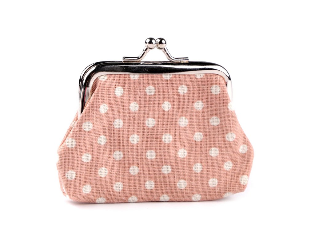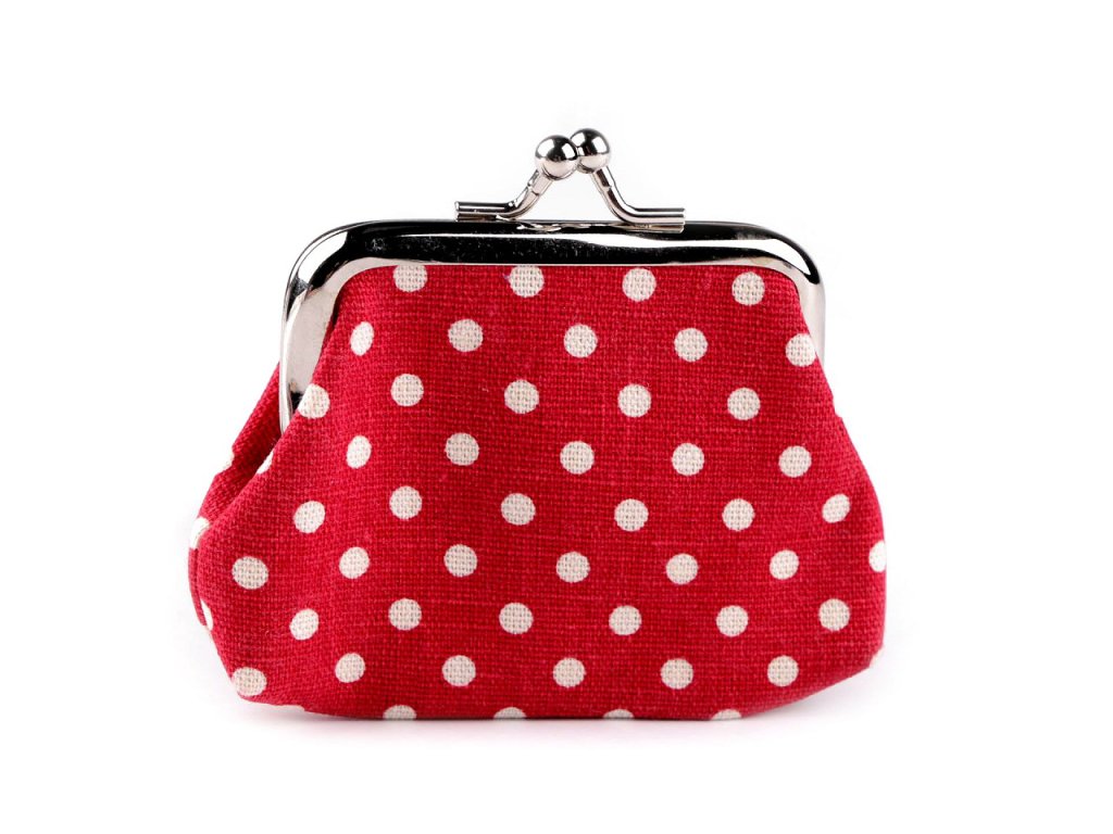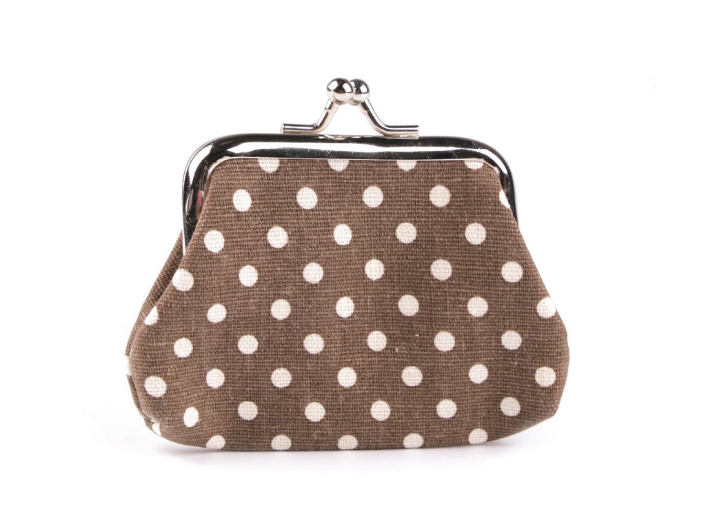 Malá puntíkovaná peněženka je vhodná na drobné mince a klíče. Můžete do ní ukrýt také bankovky nebo dekorativní kosmetiku. Je lehká, textilní, nahoře zakončená kovovým rozevíracím rámečkem se zapínáním. Náš tip: peněženku můžete využít i jako malé šitíčko. Můžete si do ní uložit všechny drobné předměty, které potřebujete na cestách.- Rozměry: 8,5 x 10,5 x 1 cm