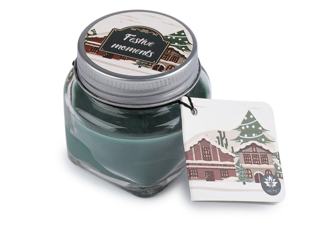 Malá vánoční vonná svíčka ve skle s jmenovkou 28 g