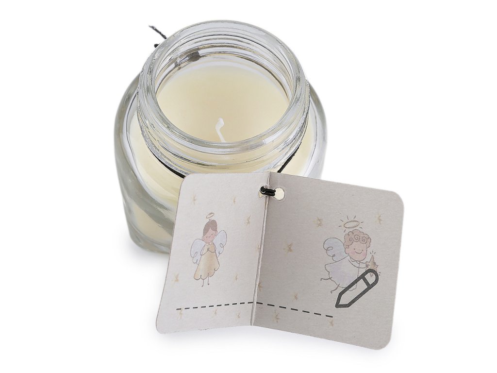 Vonná svíčka ve skleněné dóze s víčkem vám doma vykouzlí pohodovou atmosféru a nádherně provoní interiér. Vydrží hořet 8 - 10 hodin. Díky cedulce, kam můžete napsat vzkaz, je vhodná také jako dárek. Vůně svíček najdete popsané u variant zboží.- Průměr: 5,7 cm
