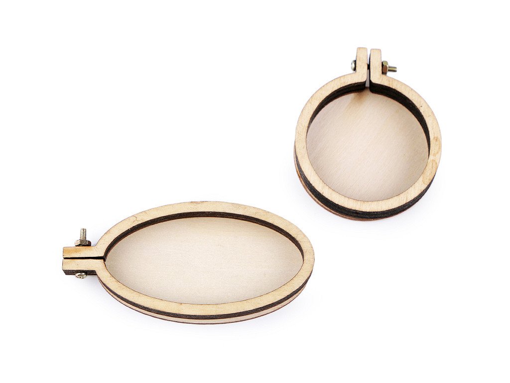 Malý dřevěný rámeček / přívěsek na vyšívání ovál, kruh