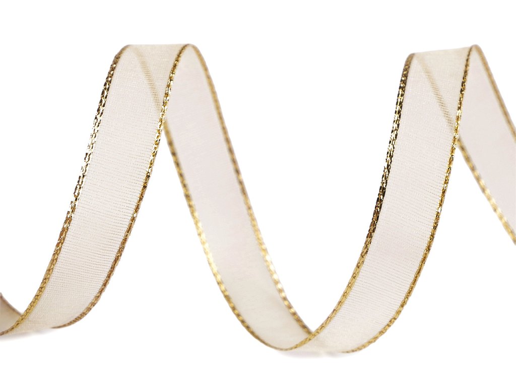Monofilová stuha je průsvitná, ozdobená lurexovými okraji, které se působivě třpytí. Díky svému efektnímu vzhledu se stane nepostradatelným doplňkem při každé příležitosti, kde je žádoucí přidat trochu lesku a elegance. Použití: Stuhu využijete na zimní a vánoční aranžování, perfektně se hodí pro ovázání dárků, kde ozdobí každý balíček a přidá na jeho exkluzivitě. Je vhodná i pro výrobu svatebních dekorací nebo výzdobu slavnostních stolů. Můžete z ní vyrobit i jednoduché mašle, stuha pěkně drží tvar.- Šíře: 10 mm
