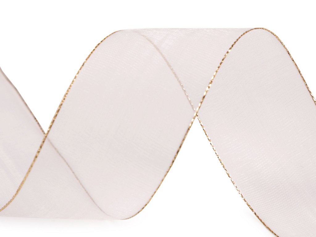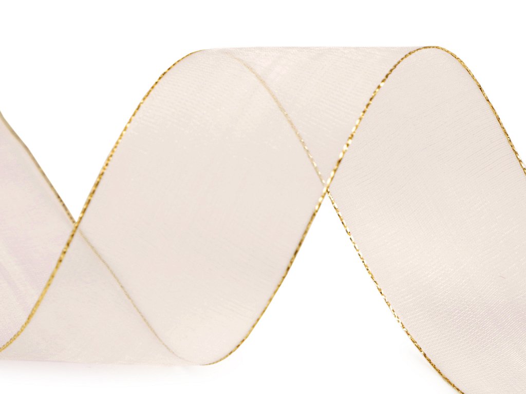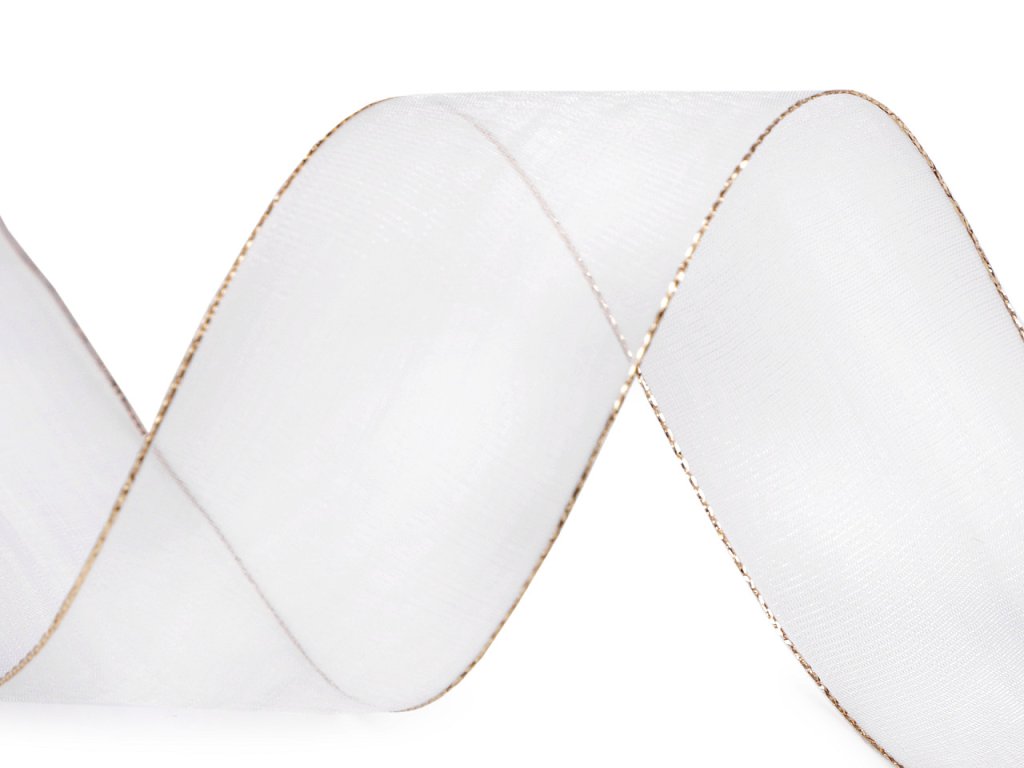 Monofilová stuha je průsvitná, ozdobená lurexovými okraji, které se působivě třpytí. Díky svému efektnímu vzhledu se stane nepostradatelným doplňkem při každé příležitosti, kde je žádoucí přidat trochu lesku a elegance. Použití: Stuhu využijete na zimní a vánoční aranžování a balení dárků. Můžete z ní vyrobit i jednoduché mašle, stuha pěkně drží tvar. Je vhodná i pro výrobu svatebních dekorací nebo výzdobu slavnostních stolů.- Šíře: 40 mm