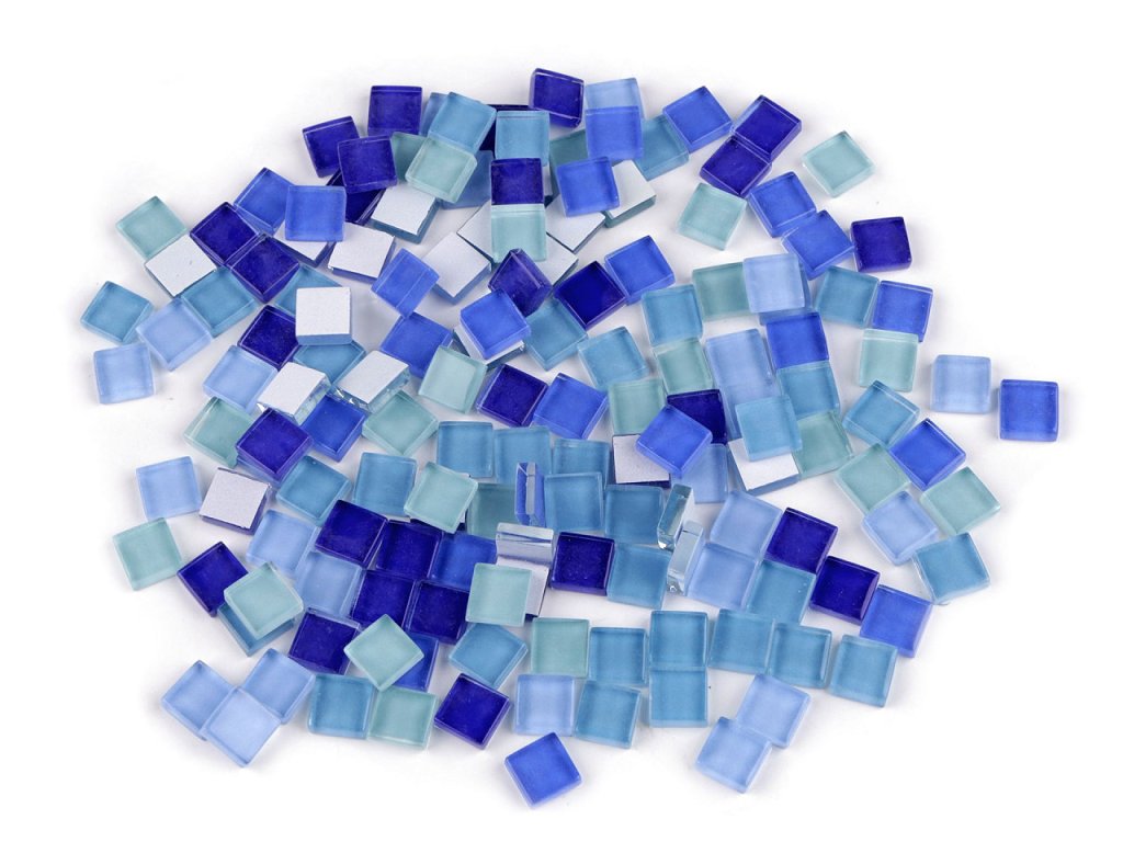 Skleněné mozaikové kamínky vynikají nádherným leskem a dokonalým povrchem. Hodí se k nalepení na materiály jako je plast, dřevo, kámen, kov, keramika a jiné. Hrany nejsou ostré, zadní strana je hladká. Mozaikou můžete ozdobit kartonové a dřevěné krabičky, květináče, šperkové polotovary, skleněné vázy, svícny, lahve, amfóry, kameny apod. Použití: objekt, na který budete mozaiku vytvářet, i kamínky musí být suché a čisté, bez prachu a mastnoty. Na připevnění mozaiky můžete použít beton, lepidlo nebo oboustrannou lepicí pásku. Lepidla stačí nanést trošku na kamínek a ten přilepit na vybrané místo. Lepidlo nechejte 24 hodin zaschnout. Poté můžete použít spárovací hmotu a výsledné dílo tak dotáhnout k dokonalosti, ale její použití není nutné. Kamínky můžete lepit těsně vedle sebe, jsou velice přesné, jeden jako druhý. V balení je cca 570 ks kamínků. Pokryjí plochu cca 20 x 30 cm.- Rozměry: 10 x 10 mm