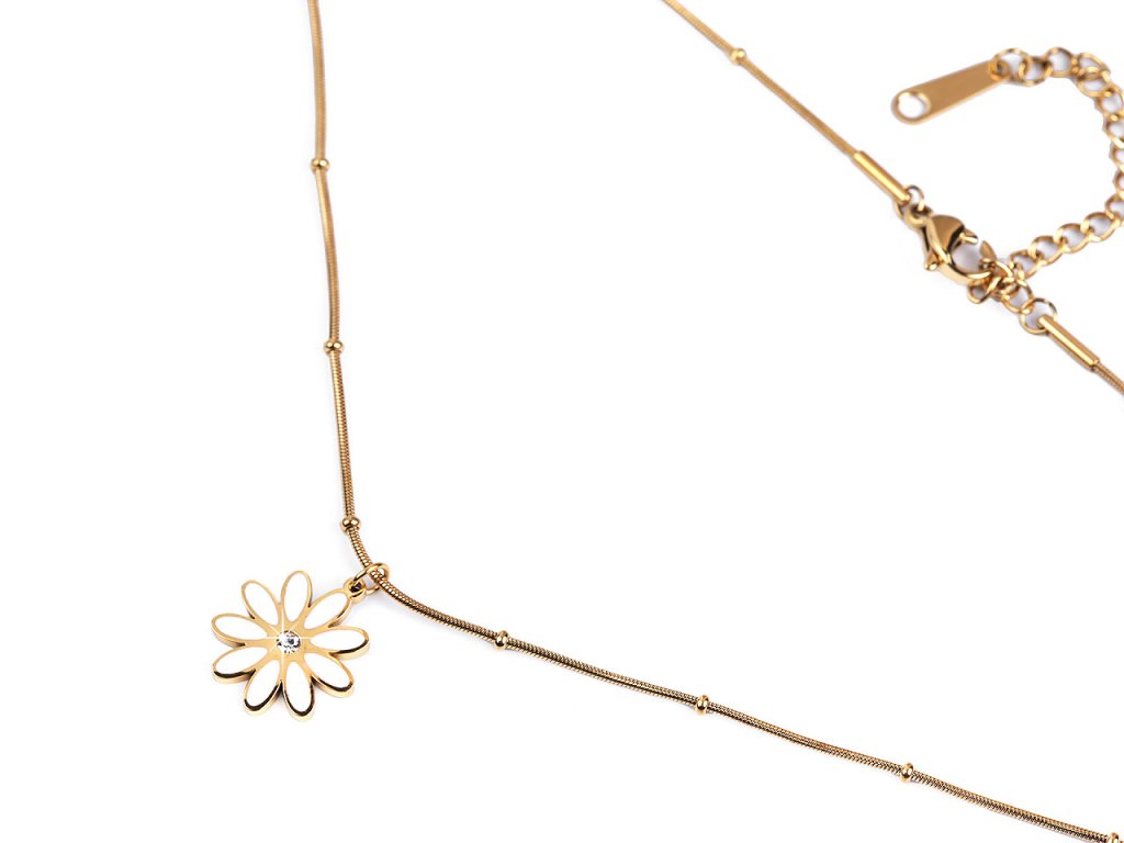 Náhrdelník z nerezové oceli květ s broušeným kamínkem