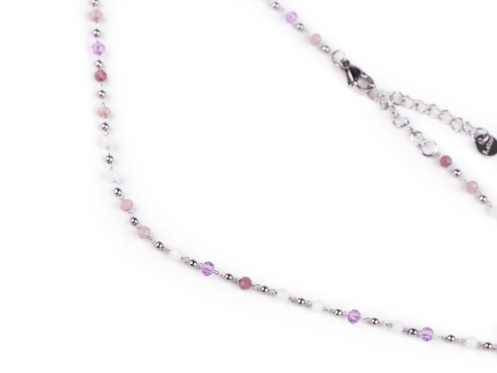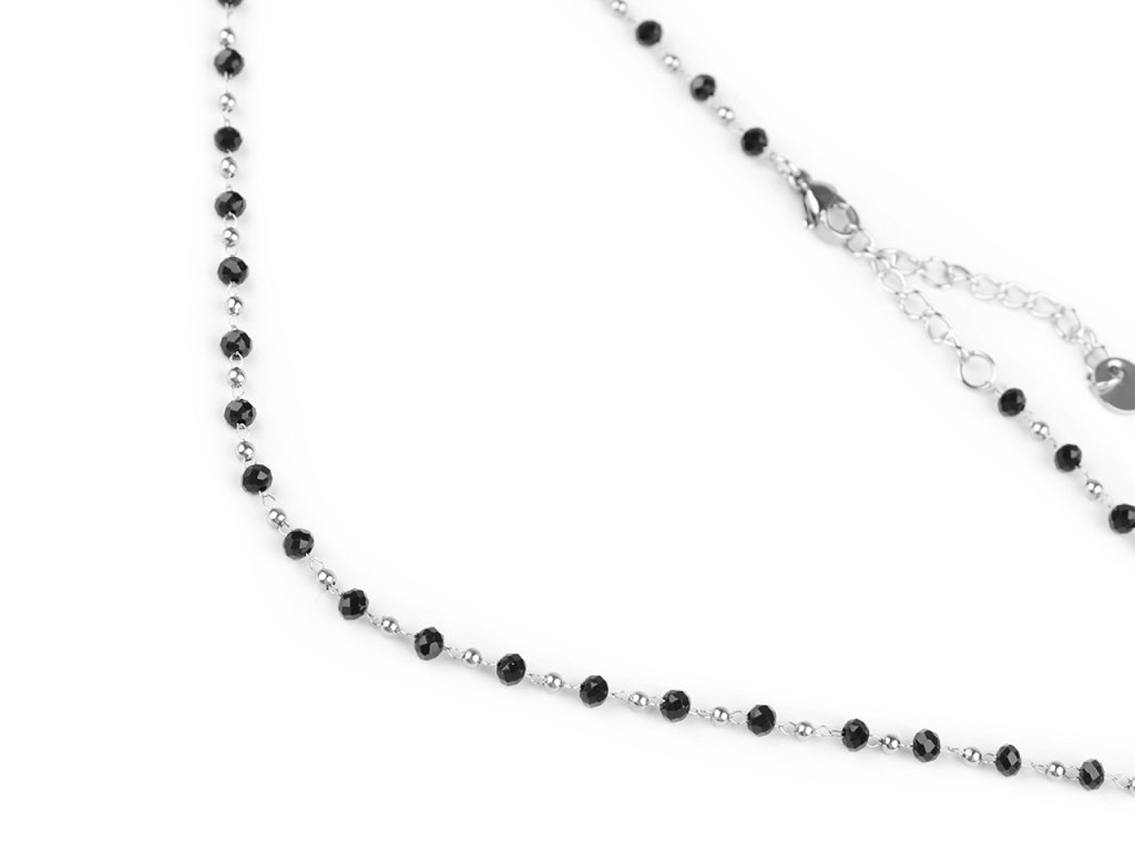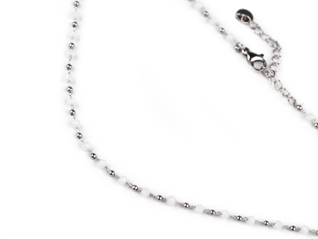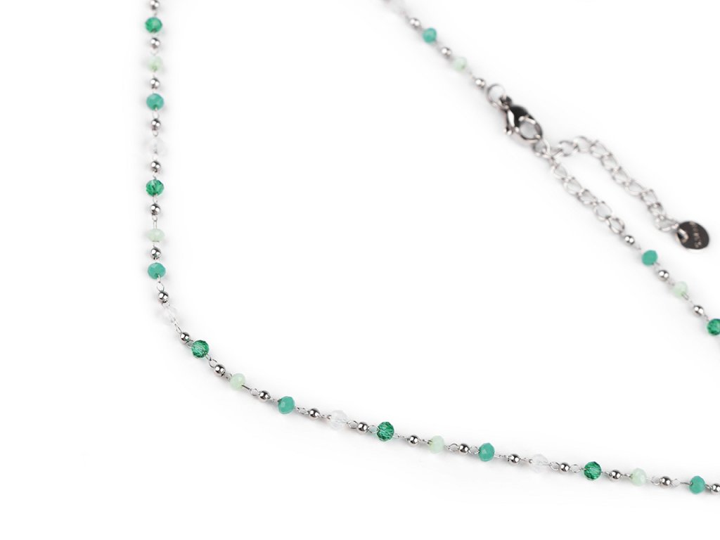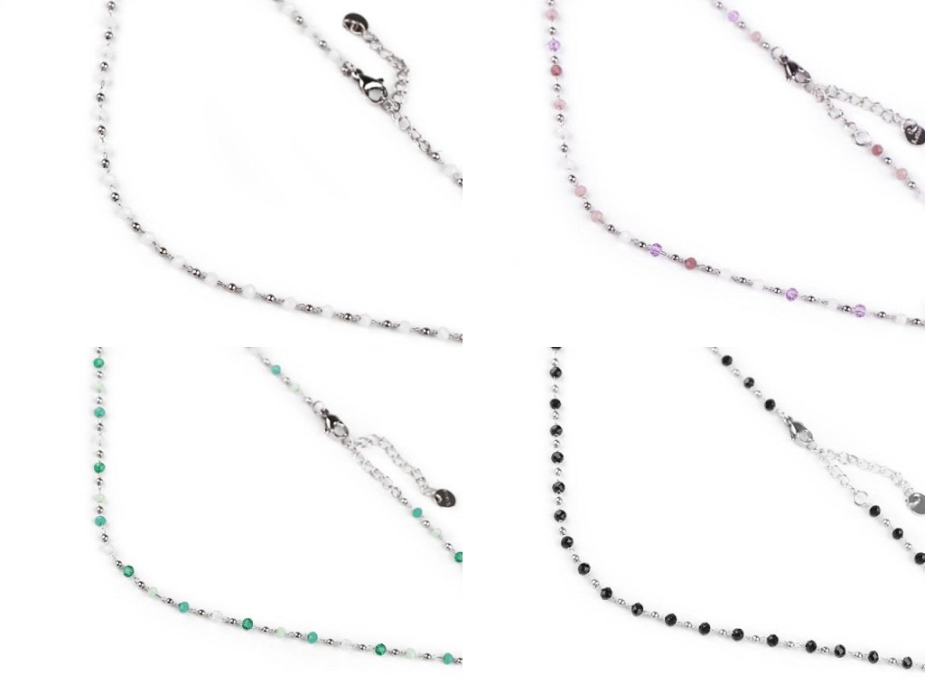 Jemný ketlovaný náhrdelník je vyrobený z kvalitní nerezové oceli. Je ozdobený broušenými a kovovými korálky. Broušené korálky se jemně třpytí, náhrdelník se hodí k slavnostním šatům i na běžné nošení, má velice všestranné využití. Zapíná se na karabinku a prodlužovací řetízek.- Délka: 40 cm