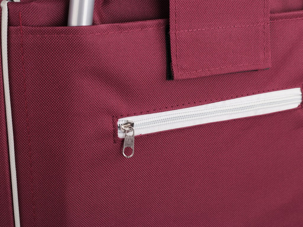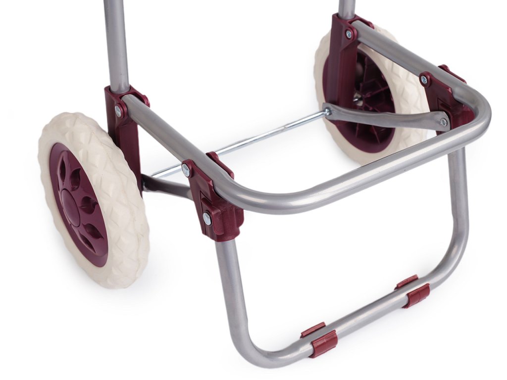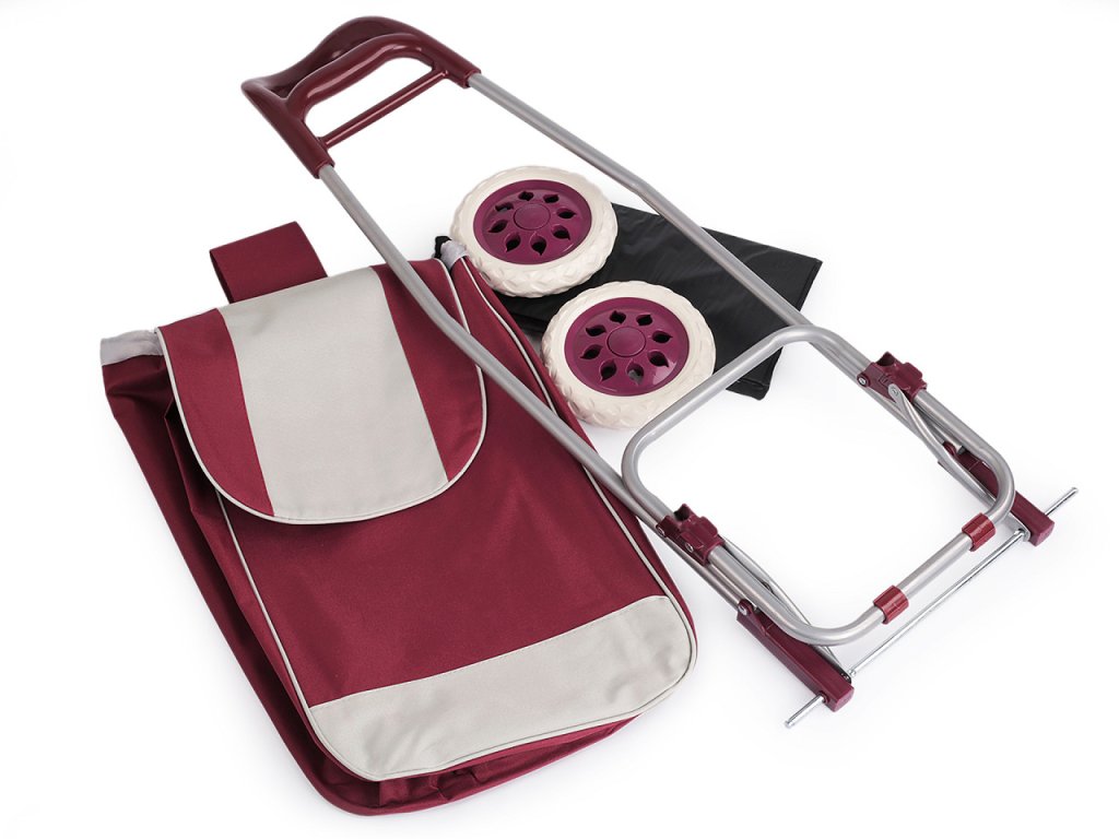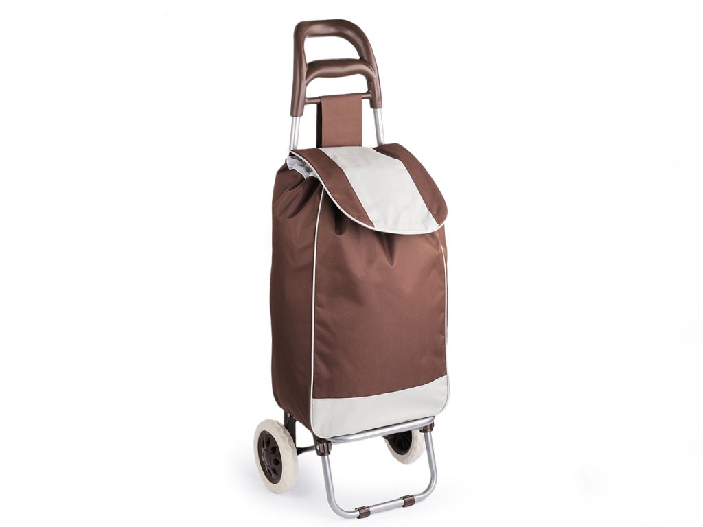 Nákupní taška na kolečkách usnadní vaše nakupování. Ocení ji senioři, ale i všichni, kteří neradi nosí těžké nákupy. Taška je prostorná, pohodlně převeze těžší nákup nebo jiné věci, které potřebujete přenést. Dá se odejmout z kovové konstrukce pro snadnější vyndání nákupu. Poté se lehce znovu upevní ke konstrukci. Pod klopou se taška uzavírá na stahovací šňůru, na zadní straně má malou kapsičku na drobnosti na zip. Tašku je možné čistit jemným hadříkem nebo houbičkou a teplou mýdlovou vodou. Má desku pro zpevnění dna, kterou je možné vyjmout. Taška je plně sklopná, kolečka se dají odejmout po zmáčknutí jejich středu. Tašku dodáváme rozloženou - nesestavenou.- Rozměry (ŠxVxH): 32 x 50 x 19 cm