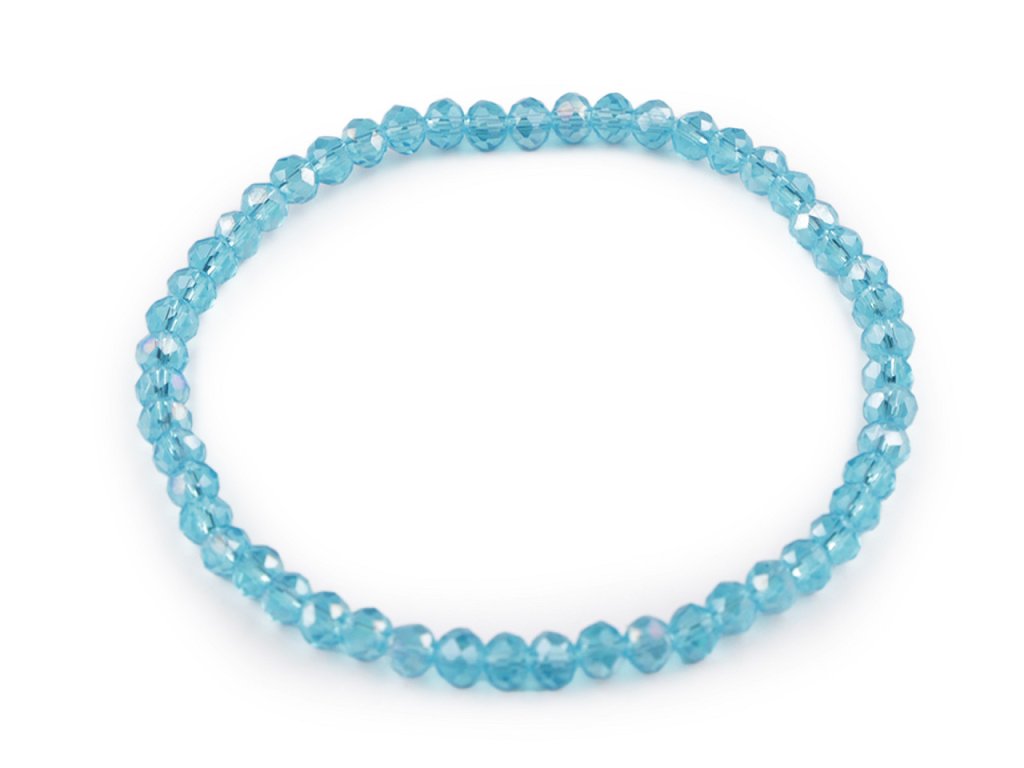 Elegantní náramek ze skleněných broušených korálků oceníte pro jeho třpyt i efektní vzhled. Precizní brus na korálcích způsobuje působivý lesk. Díky pružence se snadno natáhne na ruku, má univerzální velikost. Náramek vám vkusně ozdobí zápěstí na společenských událostech, ale také si ho můžete vzít do práce k halence nebo kostýmku. Zkuste kombinovat více kusů a barev dohromady, výsledek bude efektnější.- Délka: 17 - 23 cm
