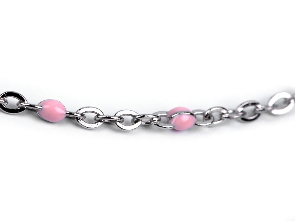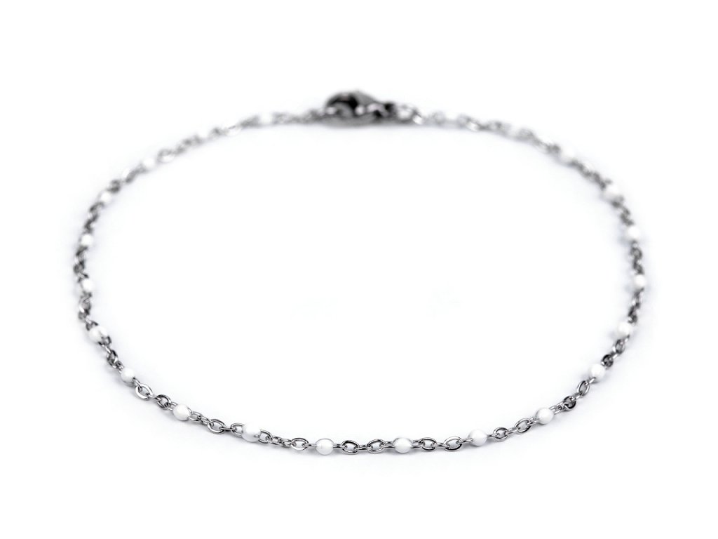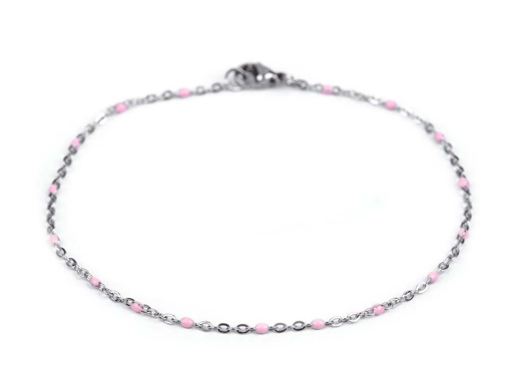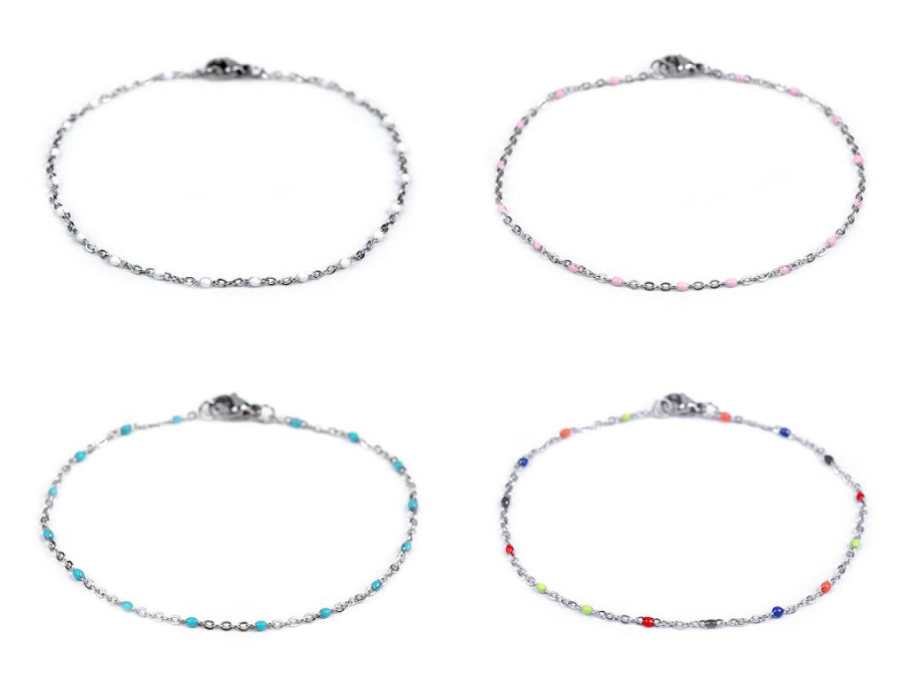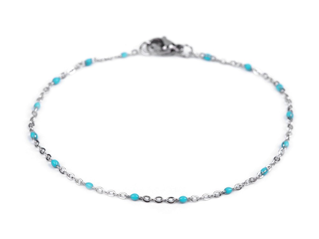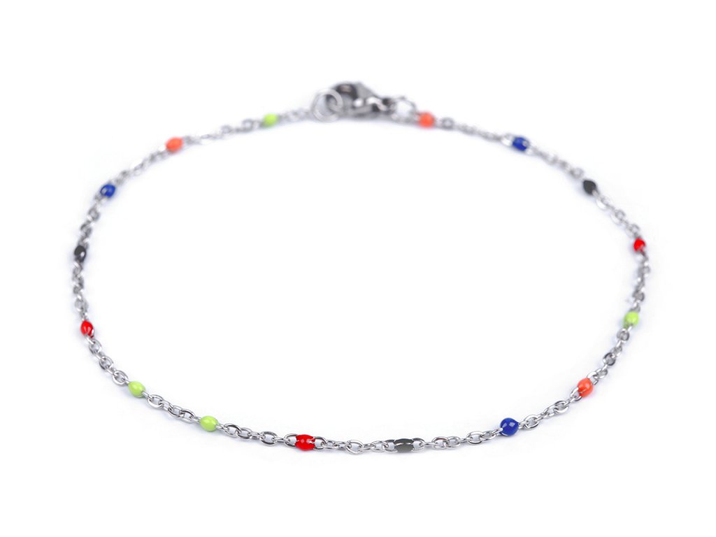 Jemný řetízkový náramek z chirurgické oceli s barevnými korálky se hodí jako doplněk k jakémukoliv oděvu. Zapíná se na karabinku a nemá adjustační řetízek.- Délka: 19,5 cm