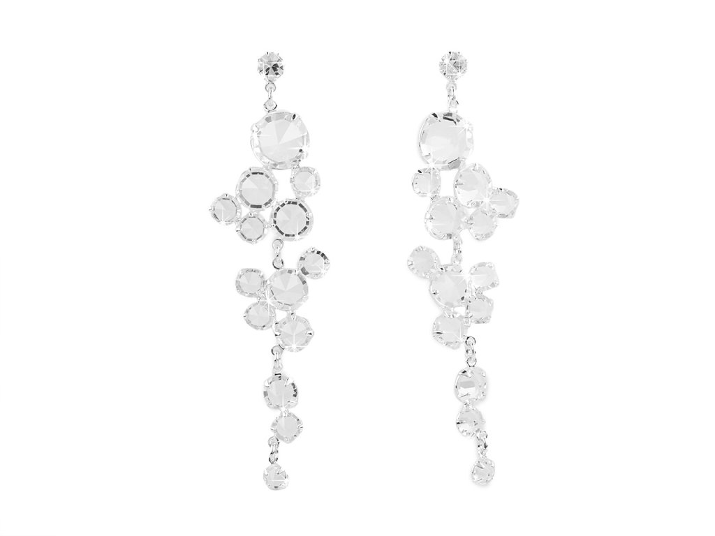 Dlouhé elegantní náušnice ozdobené broušenými kamínky jsou velice výrazné. Jsou nepřehlédnutelné, hodí se na speciální příležitosti. Skleněné broušené kamínky prvotřídní české kvality jsou pevně zasazené do kovového lůžka. Na slunci i umělém světle se náušnice zajímavě třpytí. Náušnice jsou puzetového typu s kovovou zarážkou.- Šířka: 20 mm