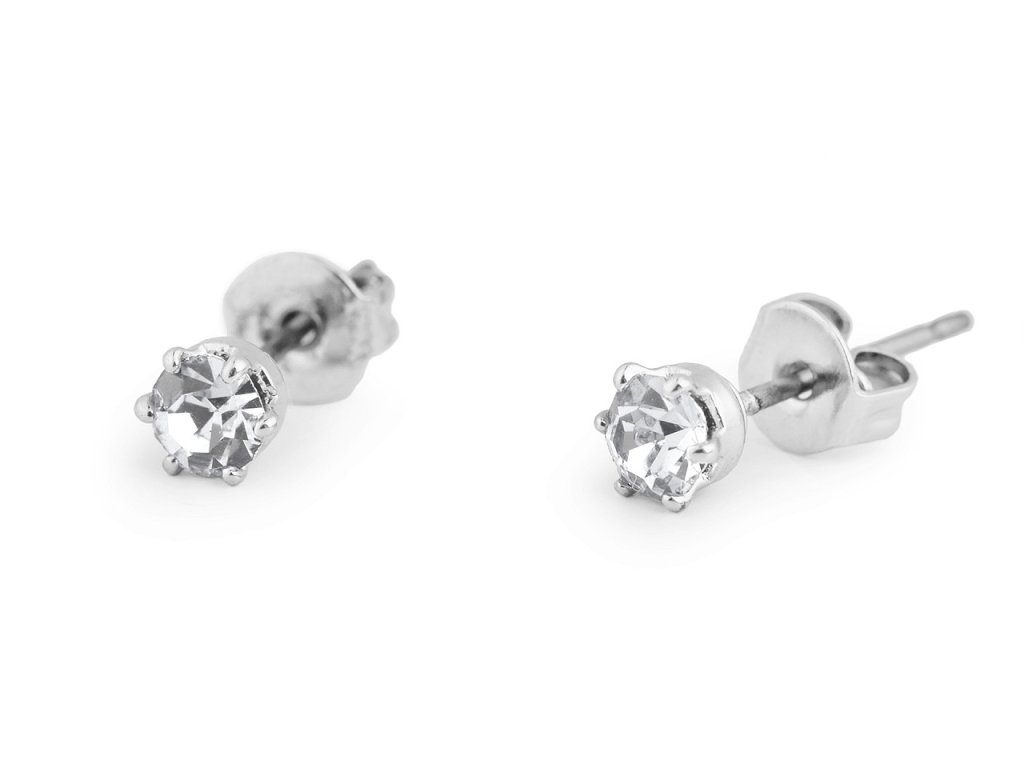 Elegantní náušnice s jedním broušeným kamínkem jsou velice decentní. Každá žena je ocení na běžné nošení i slavnostní události. Skleněný broušený kamínek prvotřídní české kvality je pevně zasazený do kovového lůžka. Na slunci i umělém světle se náušnice jemně třpytí. Kov na náušnicích má povrchovou úpravu se stříbrnou galvanizací. Náušnice jsou puzetového typu s kovovou zarážkou.- Průměr: 4,5; 5; 8 mm