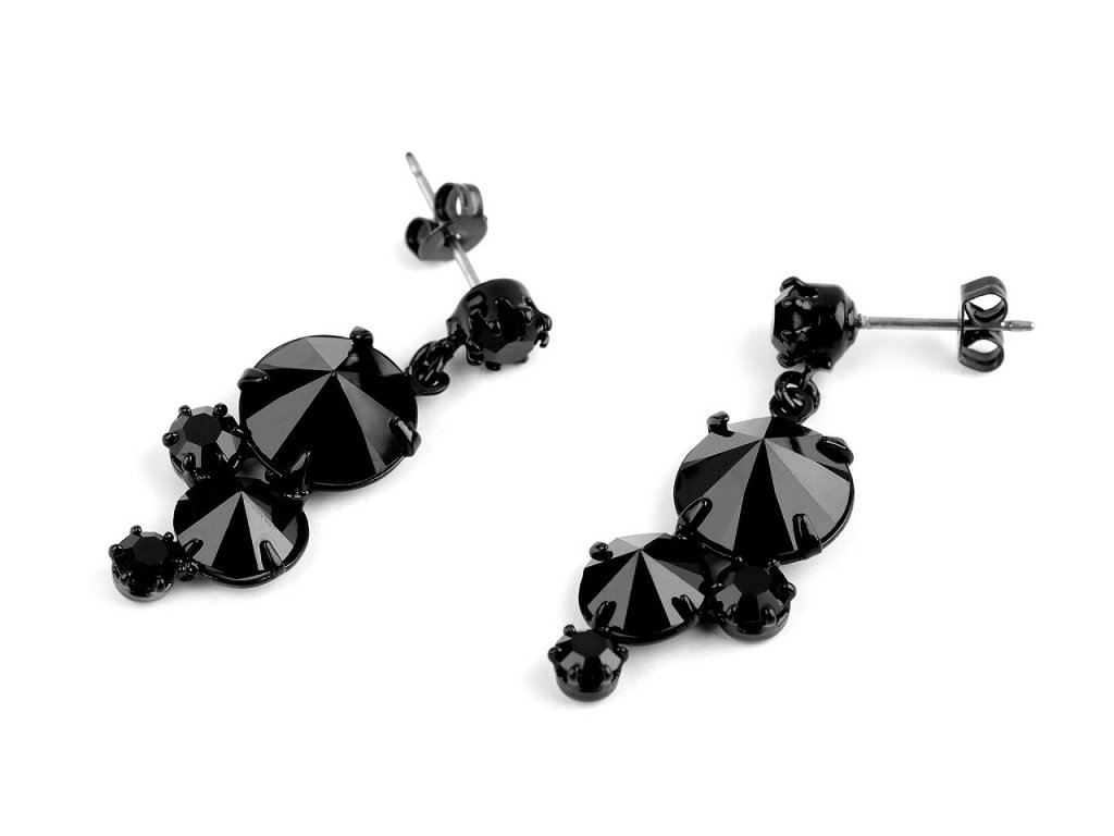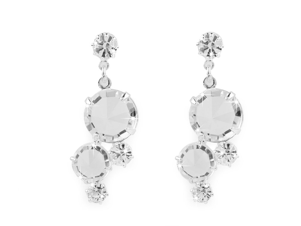 Elegantní náušnice jsou ozdobené broušenými kamínky. Každá žena je ocení na slavnostní události, jsou nepřehlédnutelné. Skleněné broušené kamínky prvotřídní české kvality jsou pevně zasazené do kovového lůžka. Na slunci i umělém světle se náušnice zajímavě třpytí. Náušnice jsou puzetového typu s kovovou zarážkou.- Šířka: 13 mm
