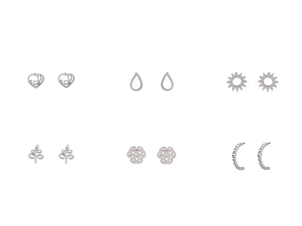 Decentní puzetové náušnice s různými motivy vynikají svou kvalitou. Jsou vyrobené z nerezové oceli, mají precizní, detailní provedení, ve vysokém lesku. Využijete je na každodenní nošení k jakémukoli outfitu. Puzeta je s kovovou zarážkou proti vypadnutí.- Rozměry: č. 1: 9 x 10 mm