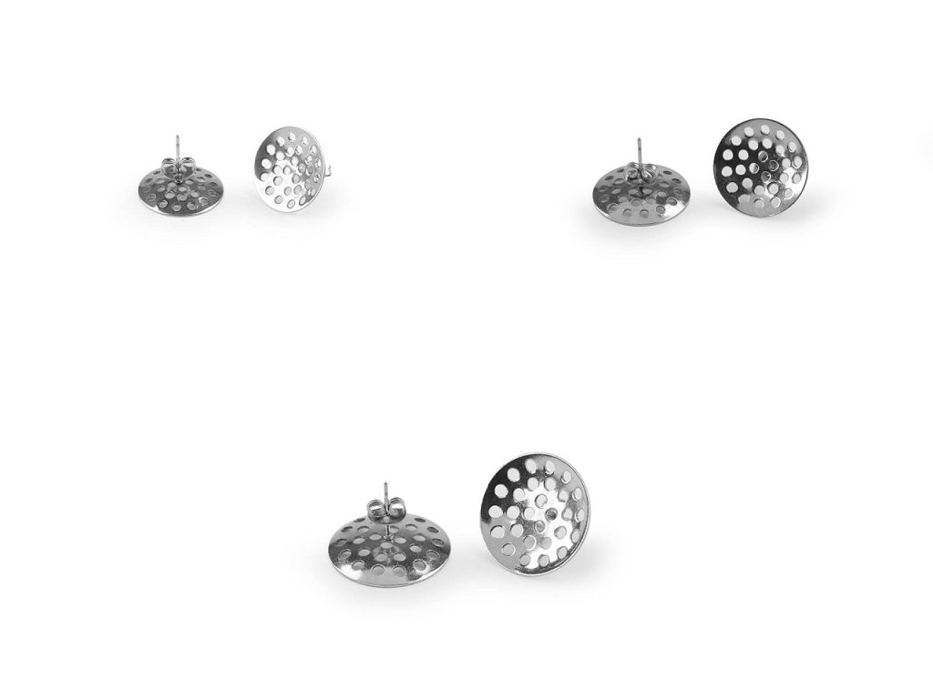Náušnicové puzety z kvalitní nerezové oceli se sítkem využijete k našití nebo přidrátování korálků nebo jiných ozdob. Sítko má tvar mističky, je ideální pro našití korálkových i plstěných kuliček. Tyto puzety jsou perfektním řešením pro výrobu vlastních náušnic, jsou vhodné pro amatérské i profesionální šperkaře, poskytují flexibilitu při designování. Na dříku mají zářez na umístění zarážky, která zabrání vypadnutí náušnice z ucha. Zarážky jsou součástí balení.- Průměr: 16; 18; 20 mm
