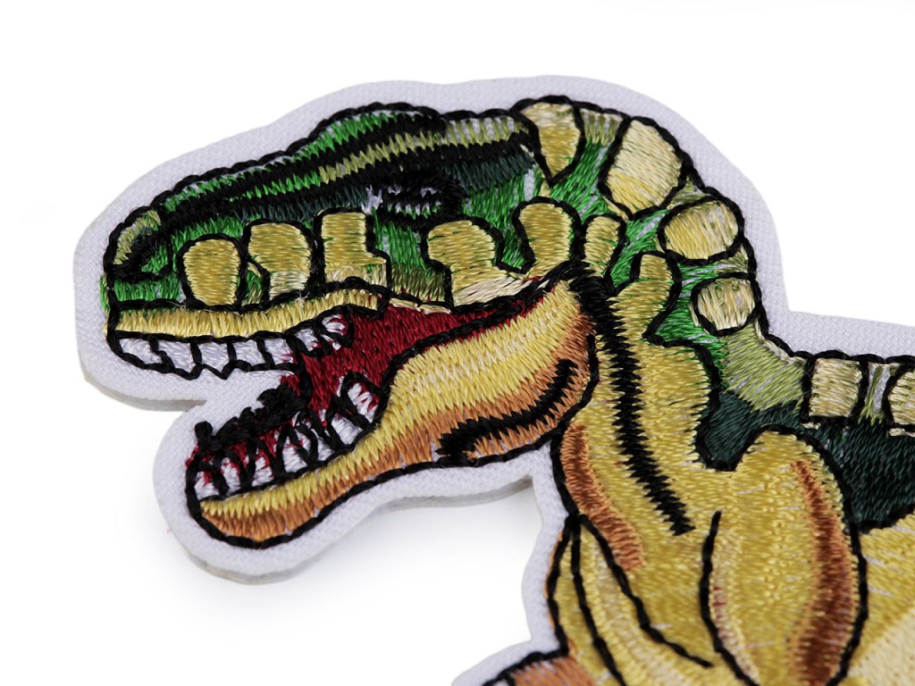 Nažehlovačka dinosaurus T-rex je velice kvalitní, má detailní provedení. Je celoplošně vyšívaná, jemně se leskne. Vynikne na oblečení pro děti a módních doplňcích. Má mnohostranné využití, slouží nejen k opravě děravého oblečení, ale i k jeho ozdobení.- Rozměry: 9 x 10,5 cm