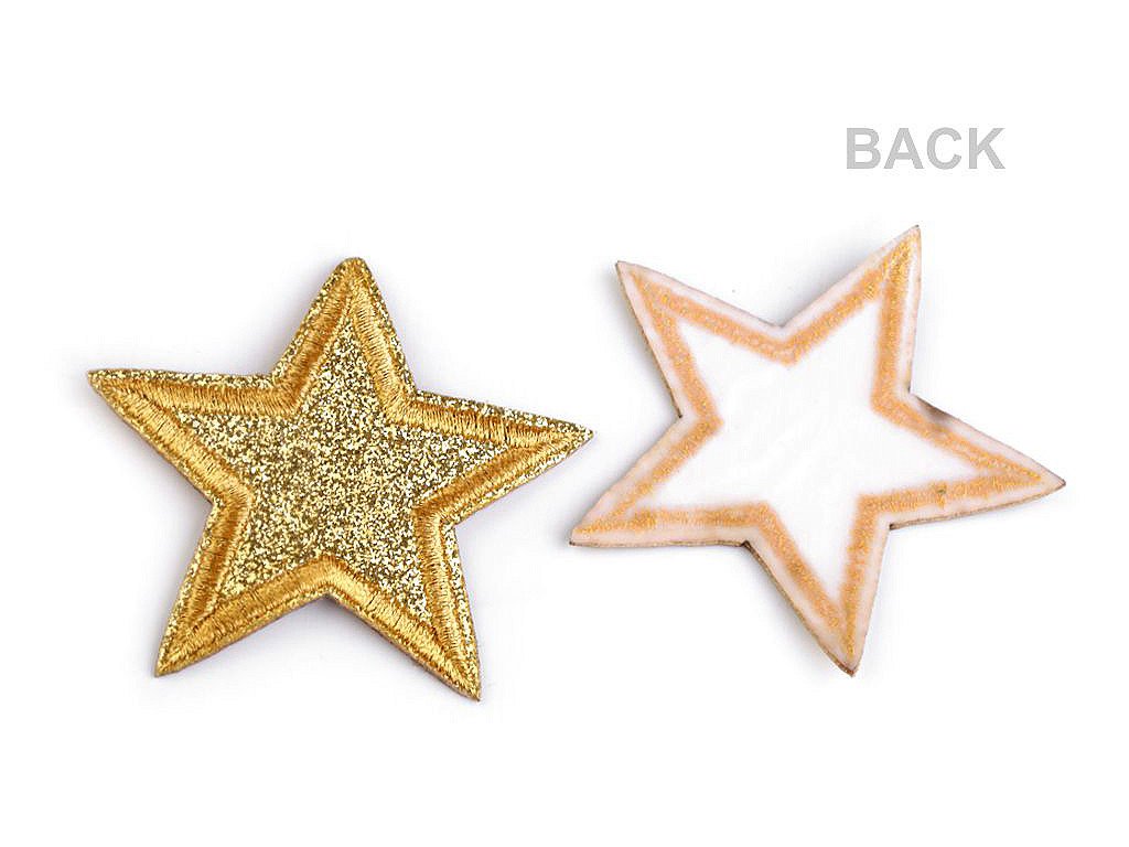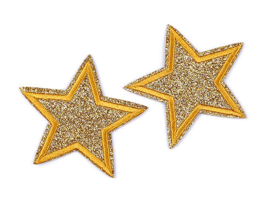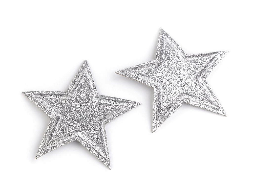 Nažehlovačka ve tvaru hvězdy je lemována lurexovou výšivkou a ozdobena glitry, díky nímž se krásně třpytí. Použití: Nažehlovačky mají mnohostranné využití. Nejčastěji slouží k ozdobení oděvů či bytových dekorací jako jsou ubrusy, prostírání, polštáře apod. Hodí se na rifle, riflové bundy, tenisky, tašky.- Průměr: 65 - 70 mm