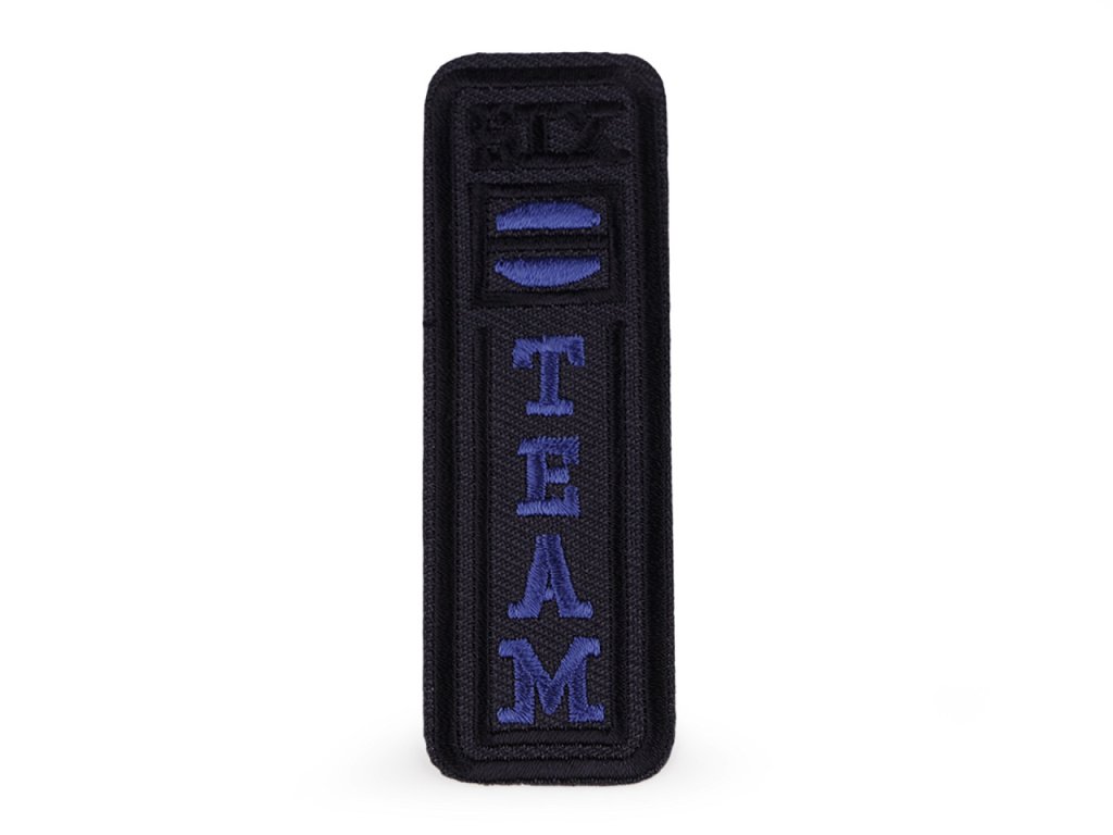 Nažehlovačka Team je stylovým a praktickým doplňkem pro všechny milovníky sportu. Je velice kvalitní, s výšivkou. Hodí se na mikiny, sportovní bundy, tašky, batohy apod. Může sloužit také jako prostředek k zakrytí případných nedostatků na oblečení a dodat mu nový, svěží vzhled. Skvěle se hodí pro děti i dospělé, pro rekreační i profesionální sportovce.- Rozměry: 2,8 x 8,5 cm