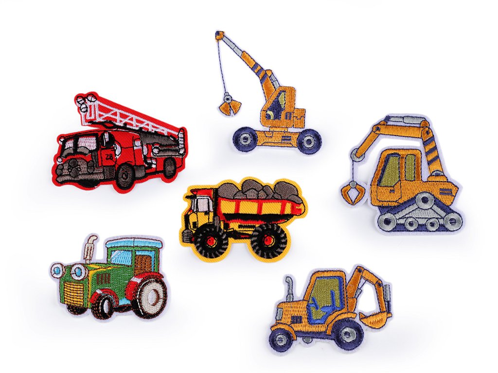 Dětské nažehlovačky s dopravními prostředky různých strojů, bagrů a jeřábů potěší především malé chlapce. Jsou velice kvalitní, s precizním celoplošným vyšíváním. Použití: Textilní nažehlovačky mají mnohostranné využití. Slouží nejenom k opravě děravého oblečení, ale i k ozdobení oděvů. Rozměry nažehlovačky č. 1 - hasiči - 5,8 x 7,5 cm. Rozměry nažehlovačky č. 2 - traktor - 5 x 6,8 cm. Rozměry nažehlovačky č. 3 - náklaďák - 4,5 x 7 cm. Rozměry nažehlovačky č. 4 - jeřáb - 6,8 x 6,8 cm. Rozměry nažehlovačky č. 5 - bagr - 5 x 6,8 cm. Rozměry nažehlovačky č. 6 - jeřáb - 6,8 x 6,8 cm.- Šířka: 4,5 - 6,8 cm