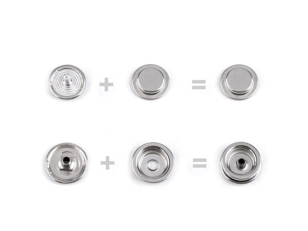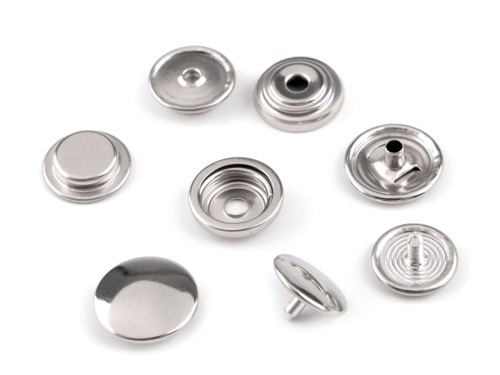 Oboustranné kovové druky Ø15 mm na silné látky, nerezové