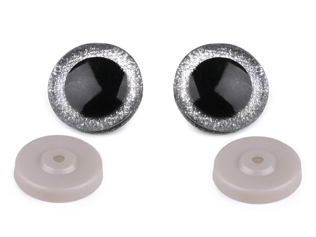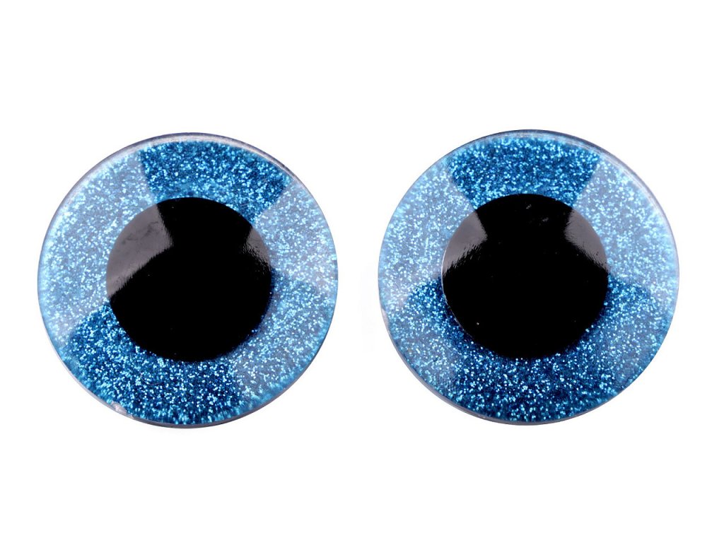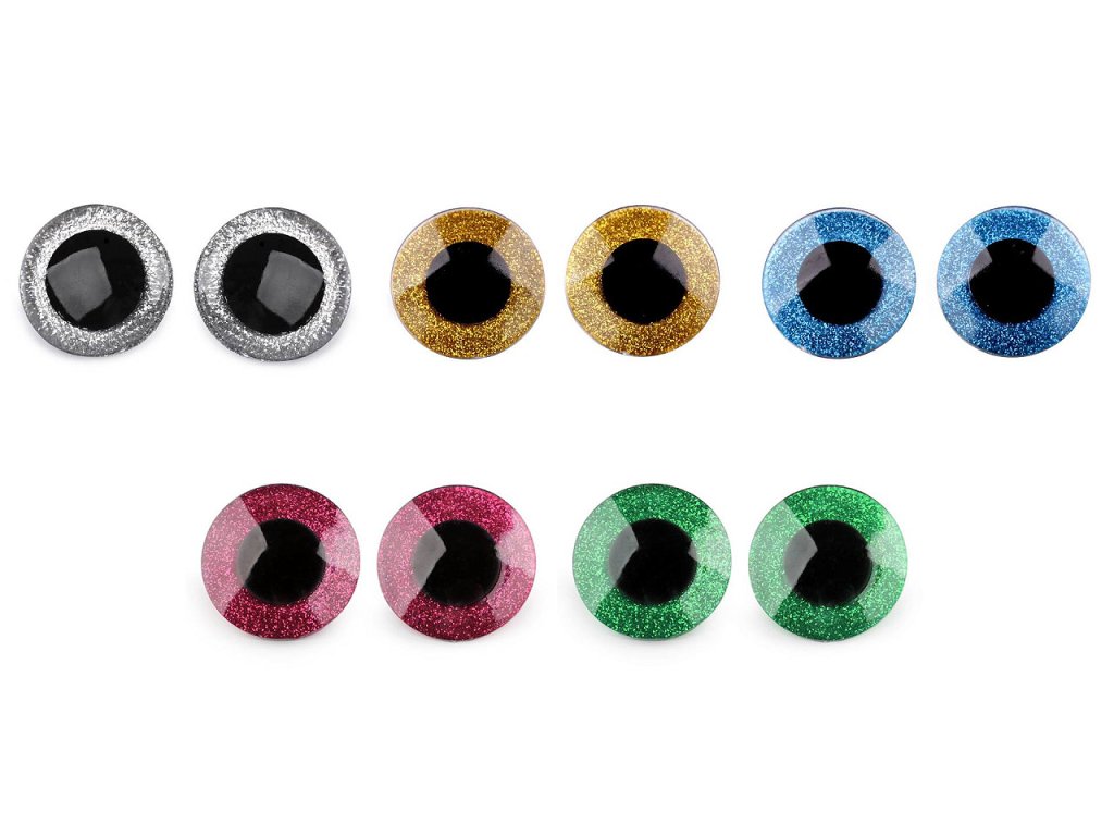 Velké polokulaté oči se třpytivou duhovkou umocní výraz vašich nejrůznějších postaviček či zvířátek. Mají závit, na který se nasadí duhovka, následně se provleče materiálem, a z druhé strany se pak nacvakne pojistka, která oči bezpečně připevní na místo. Pokud nebudete chtít, aby se oči třpytily, nemusíte duhovku použít, v tom případě zůstane duhovka transparentní. 1 sada = 1 oko + 1 třpytivá duhovka + 1 pojistka Délka vrutu je 1,5 cm.- Průměr: 40 mm