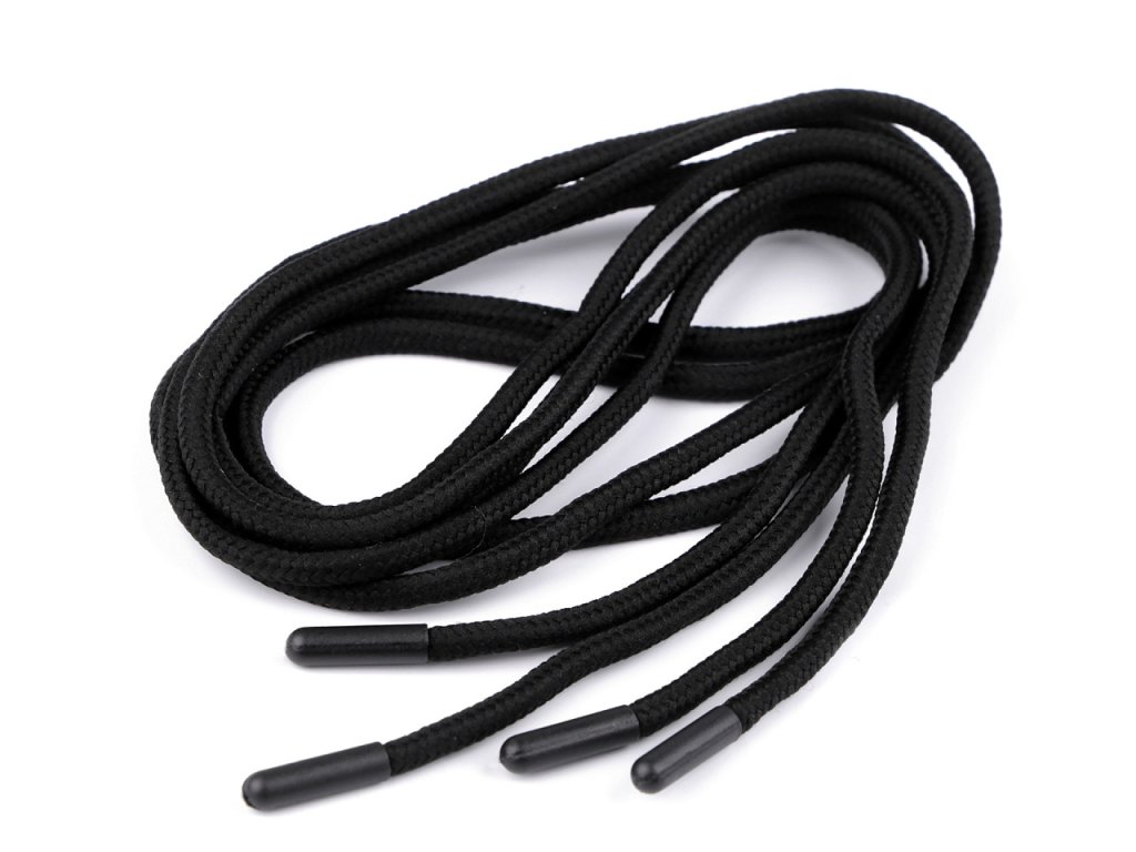 Kulatá oděvní šňůra je měkká, krásně poddajná. Na obou stranách má plastovou koncovku s kulatým zakončením. Délka koncovek je 2 cm. Použití: Šňůra je vhodná do tunýlků bund, mikin, tepláků a jiných oděvů.- Průměr: 5 mm