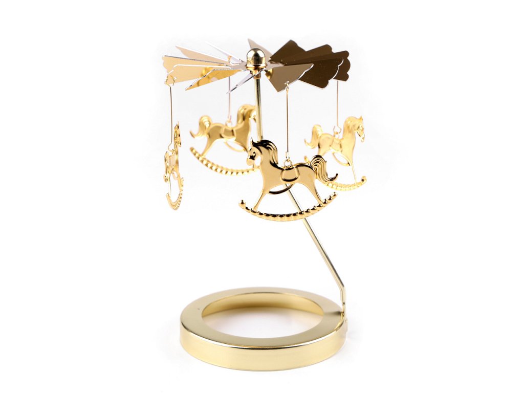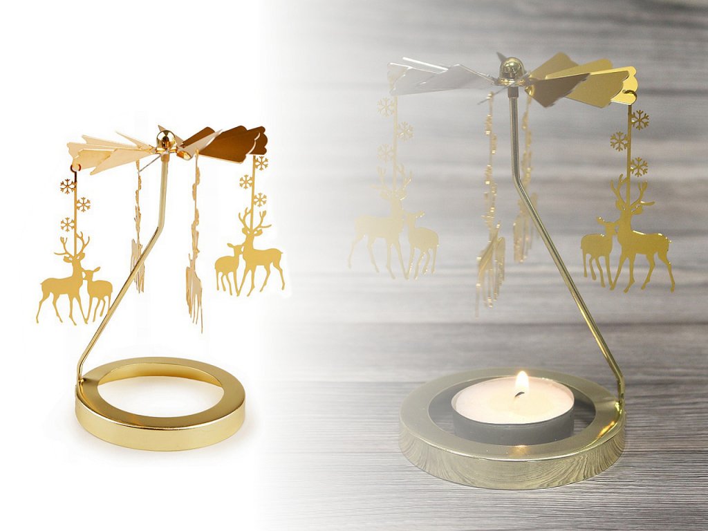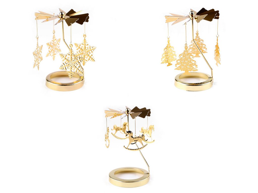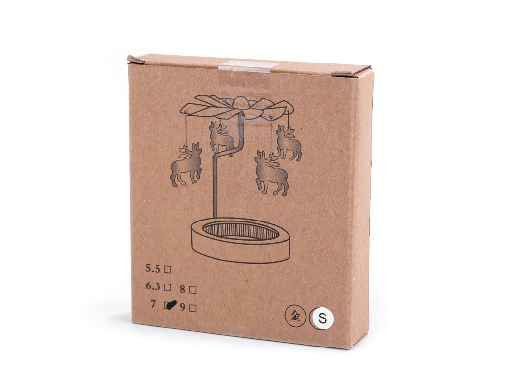 Vánoční kolotoč vám zpříjemní dlouhé zimní večery. Vložte do něj zapálenou čajovou svíčku (není součástí balení) a ozdoby na kolotoči se roztočí (necinkají). Kolotoč dodáváme v rozloženém stavu v krabičce. Při použití doporučujeme postavit kolotoč na skleněnou nebo kovovou podložku a umístit ho do volného prostoru. Výška u varianty č. 5; 6 je 11 cm. Průměr podstavce je 6 cm. Výška u varianty č. 7; 8 je 12 cm. Průměr podstavce je 7,5 cm.- Výška: 11; 12 cm