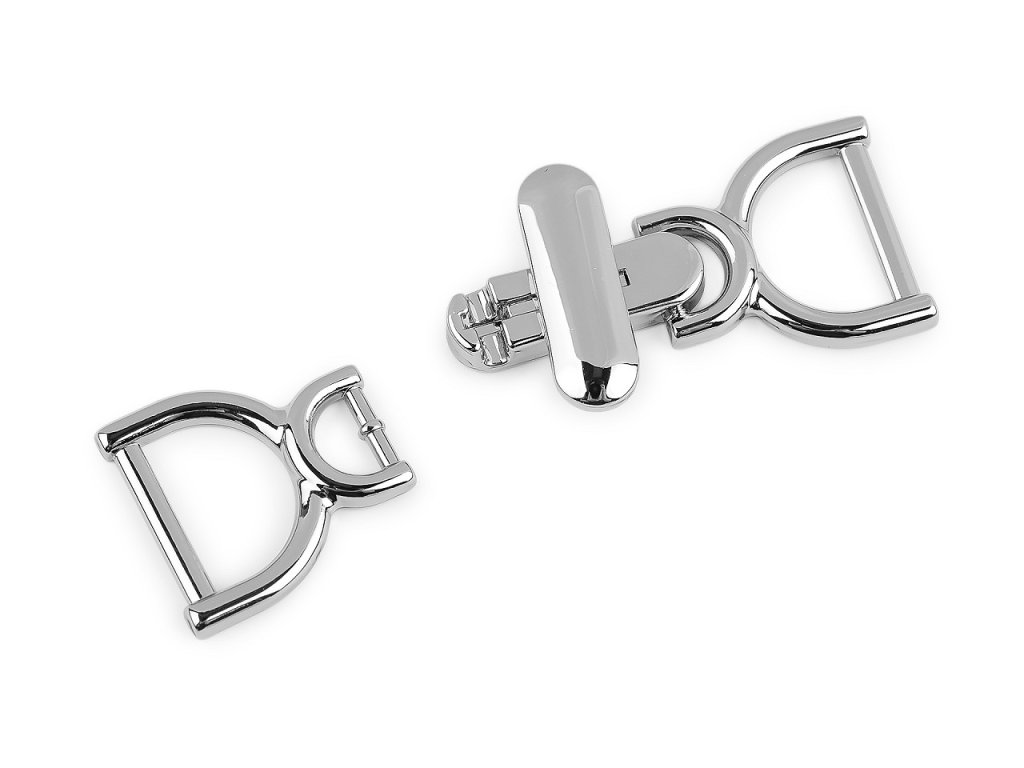 Ozdobné lesklé zapínání je vhodné na výrobu tenkých pásků nebo jako ozdobný prvek kabelek. Odepíná a zapíná se pootočením středové části.- Rozměry: 25 x 70 mm