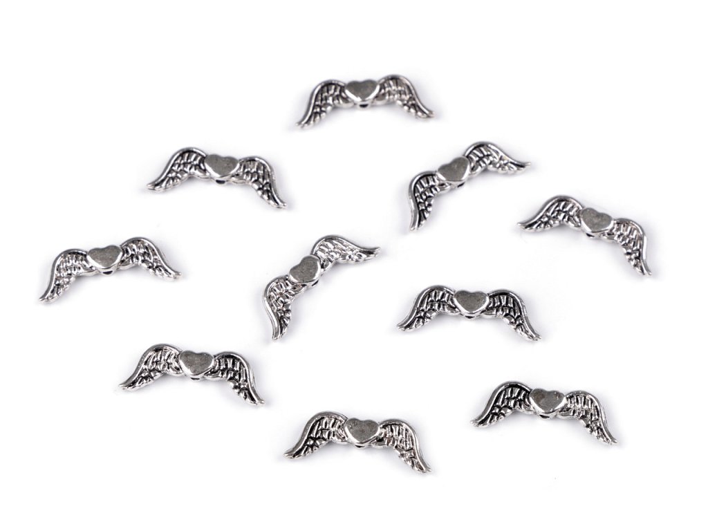 Malá křídla se srdíčkem využijete především k výrobě malých skvostných andílků. Křídla jsou drobná. Andělíčka můžete použít jako milou pozornost pro obdarovaného. Můžete jím ozdobit dárek, přání apod. Křídla jsou oboustranná, z nemagnetického kovu.- Šířka: 7 mm