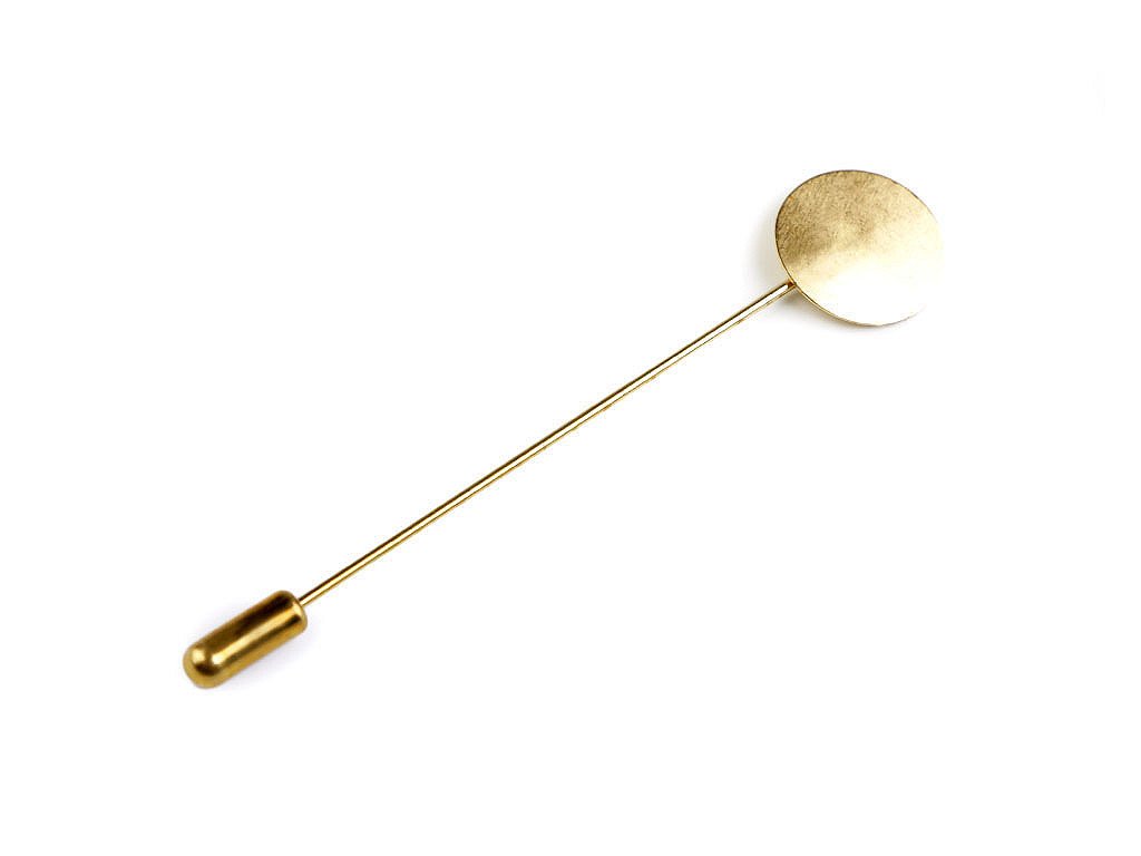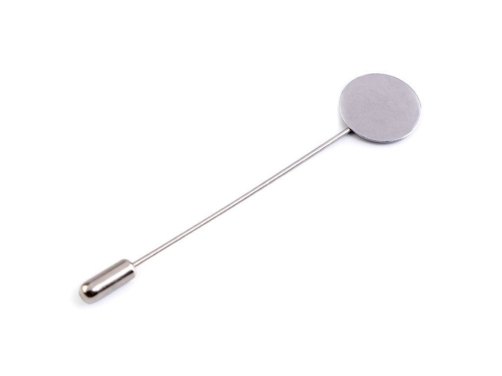Ozdobný špendlík je polotovar, se kterým si vyrobíte efektní brož. Na plošku můžete nalepit textilní květy, bambulky apod. Její průměr je 15 mm. Zapínání špendlíku je nasouvací.- Délka: 75 mm
