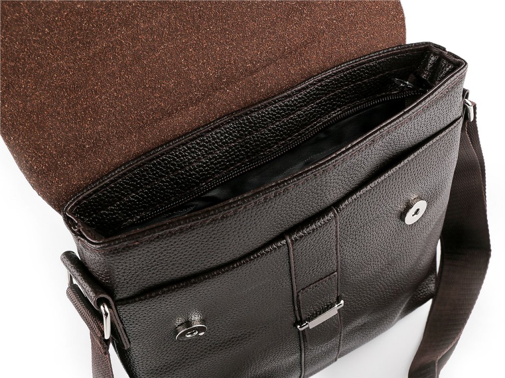 Crossbody taška je stylovým doplňkem v městském duchu, který kombinuje styl a praktičnost. Je kvalitní, vyrobená z eko kůže. Je ozdobená falešnou přezkou. Pod klopou, která má magnetické zapínání, je hlavní kapsa, která se uzavírá na zip. Uvnitř ní se nachází 1 menší přihrádka na drobnosti, která se uzavírá na zip. Na přední straně tašky je pod klopou skrytá další plochá kapsa. Na zadní vnější straně je poslední plochá kapsa na zip. Taška má napevno připevněný dlouhý nastavitelný popruh k nošení přes rameno nebo oblíbeným stylem cross-body (křížem).- Rozměry (ŠxVxH): 24 x 26 x 5 cm